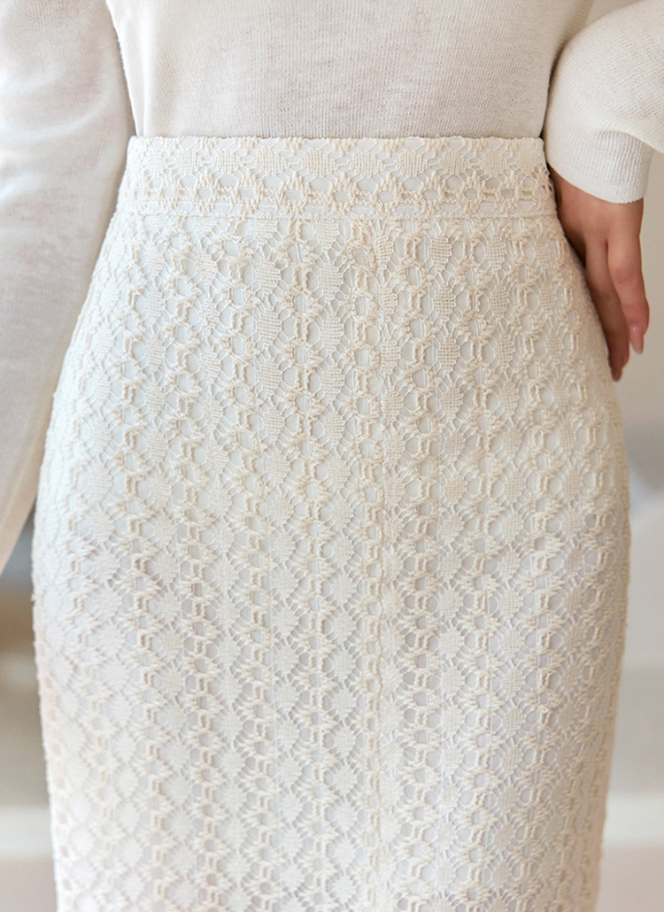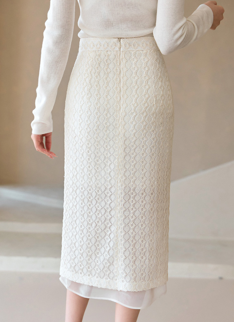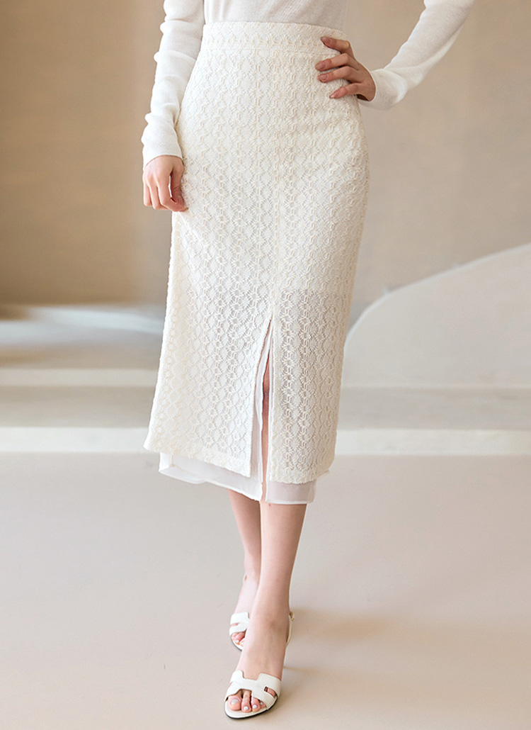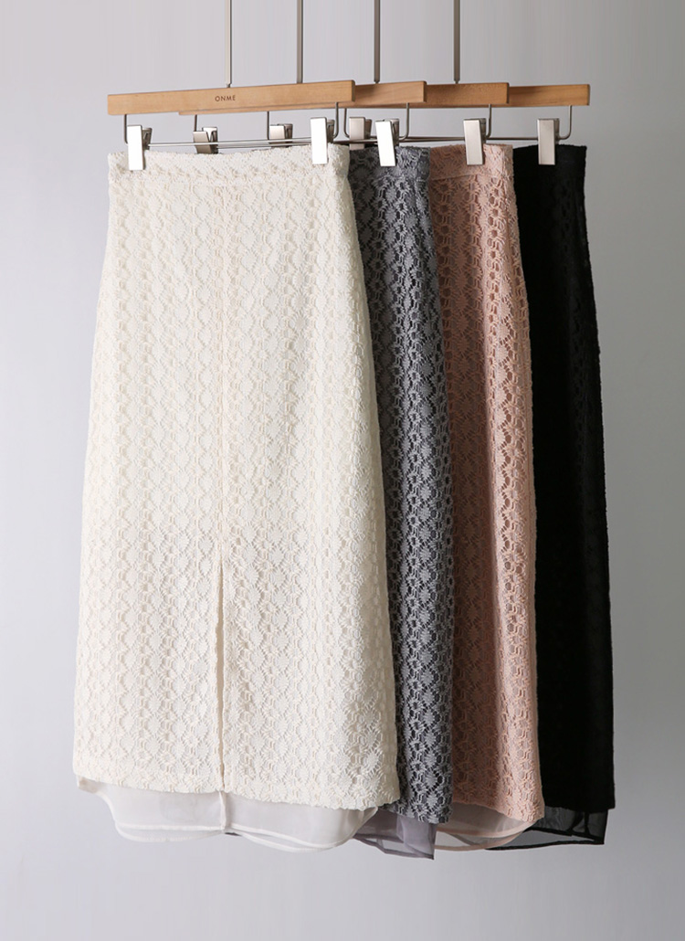 シアードッキング フロントスリット 刺繍レースミディスカート sk39267