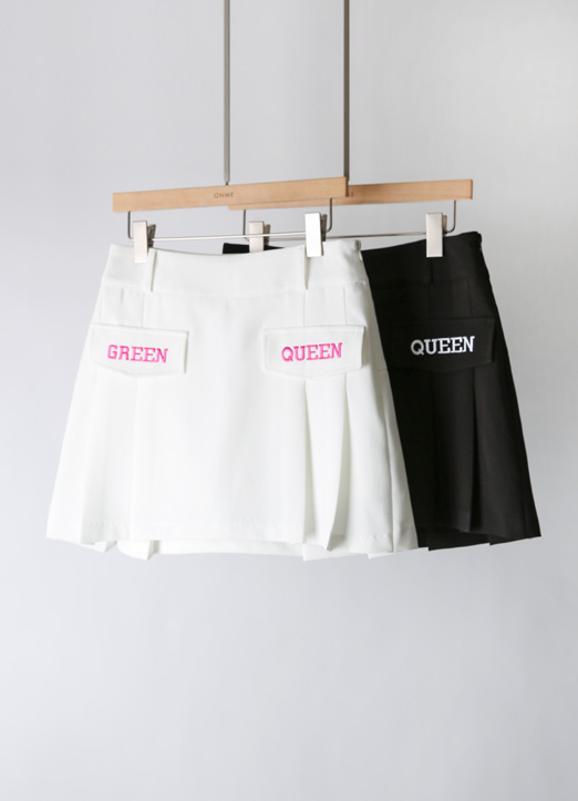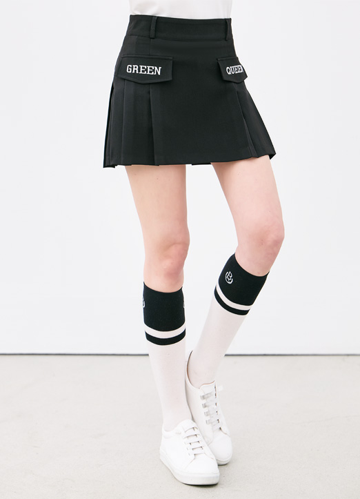 [QoG] レタリングフラップポケットプリーツミニスカート sk39291 (インナーパンツ付き)