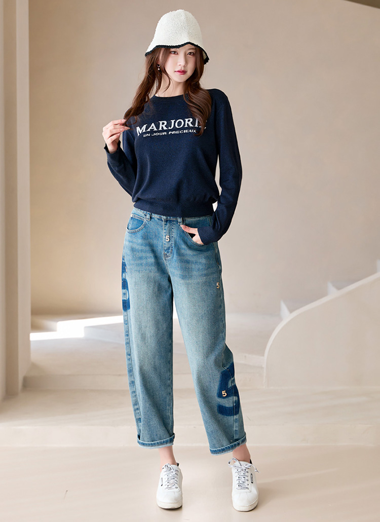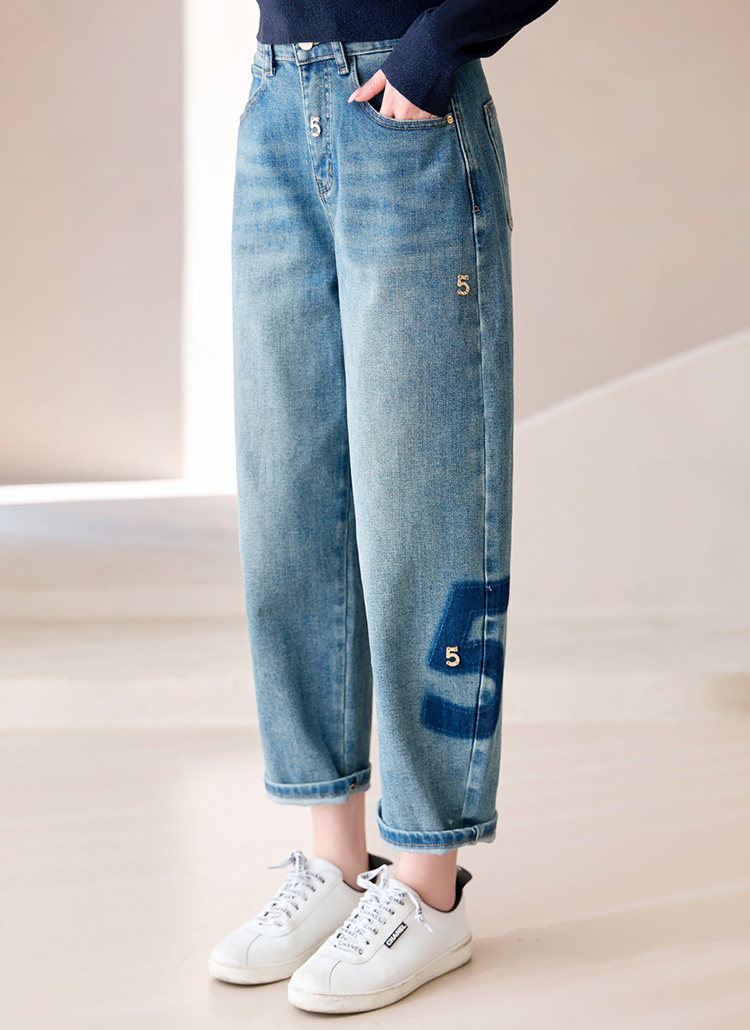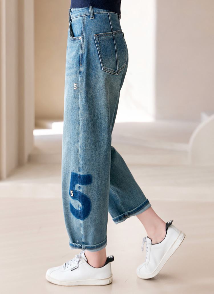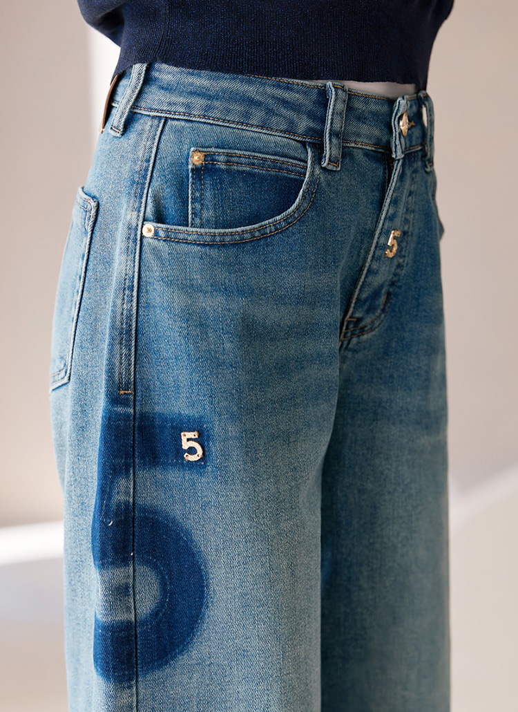 워싱 배색과 골드 펜던트로 표현된 넘버5 디테일이 멋스럽게 포인트되는
