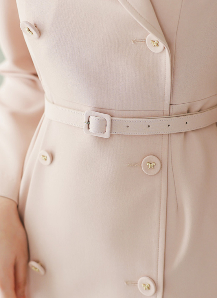 ベルト付きダブルボタンテーラードカラーワンピース op39417