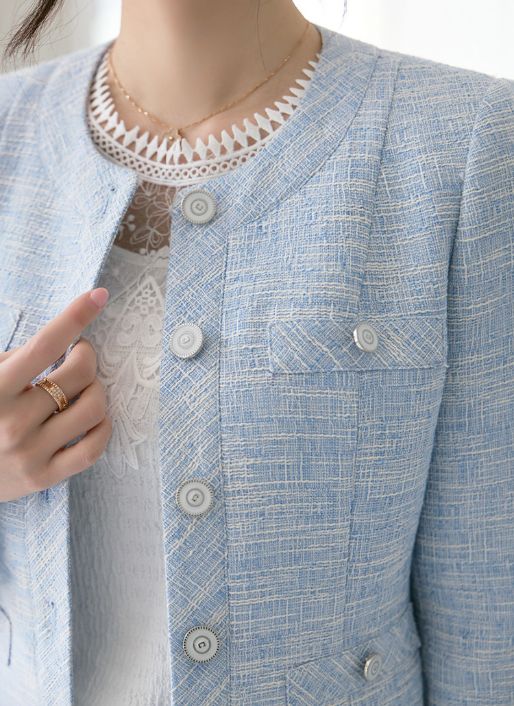 [LouisAngel] スプリングブルーノーカラーツイードジャケットjk39435