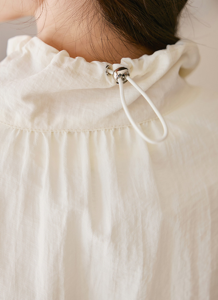 넥 카라에 스트링이 있어 취향에 따라 다양한 넥라인을 연출할 수 있으며