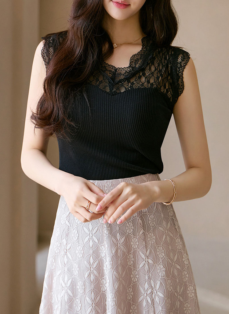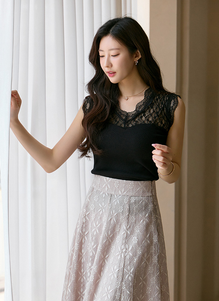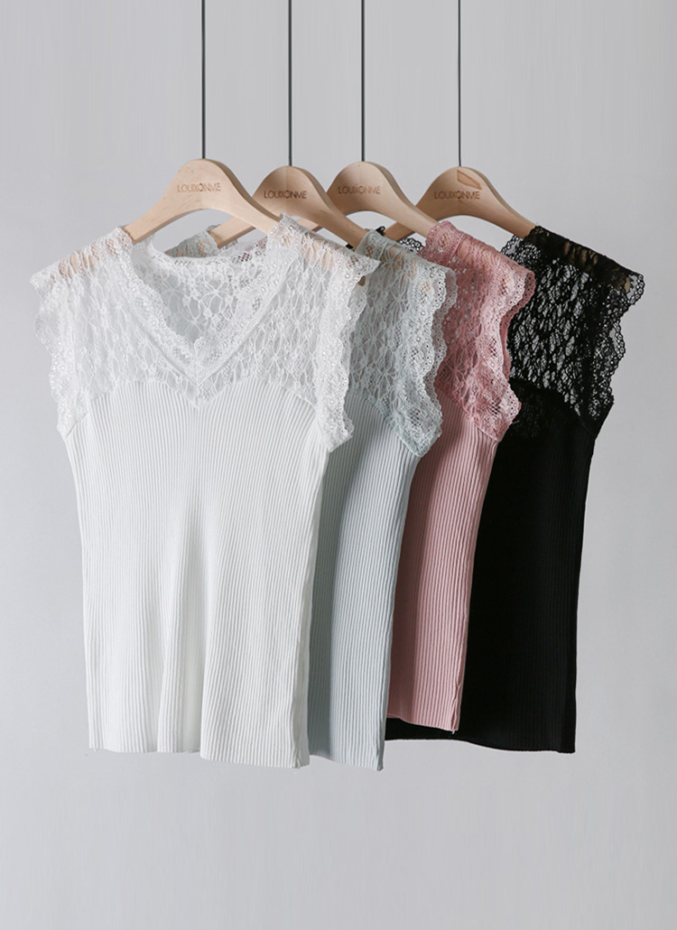 【4色展開】レースドッキングリブニットタンクトップ sl39543
