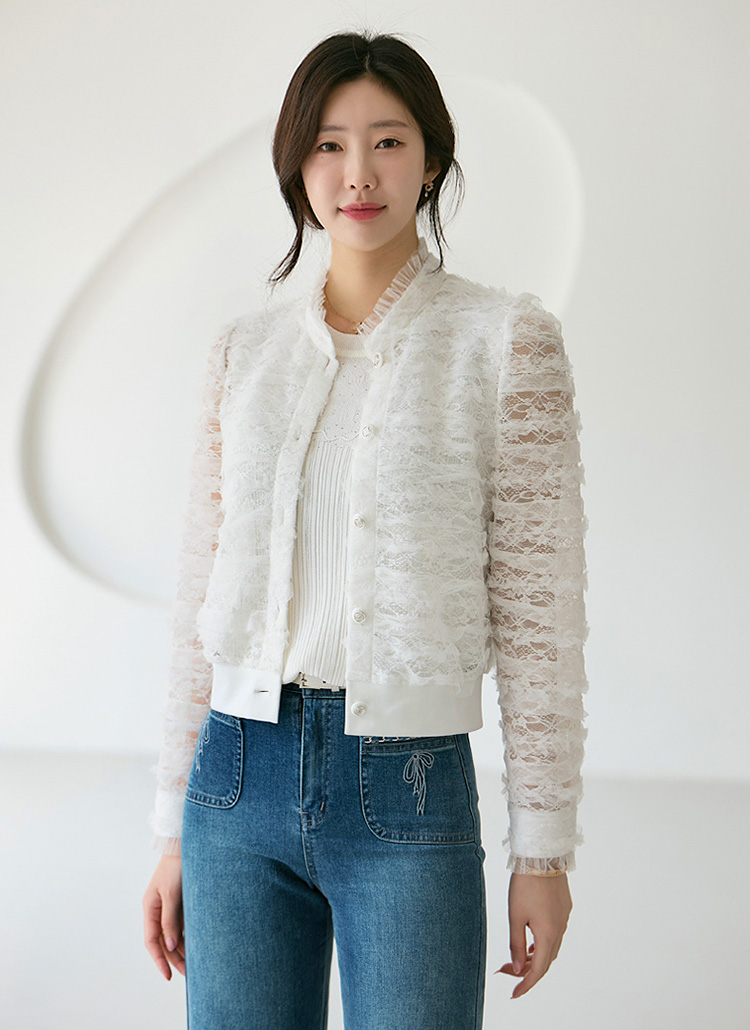 [LouisAngel] ホワイトフリルレースブルゾン jk39549