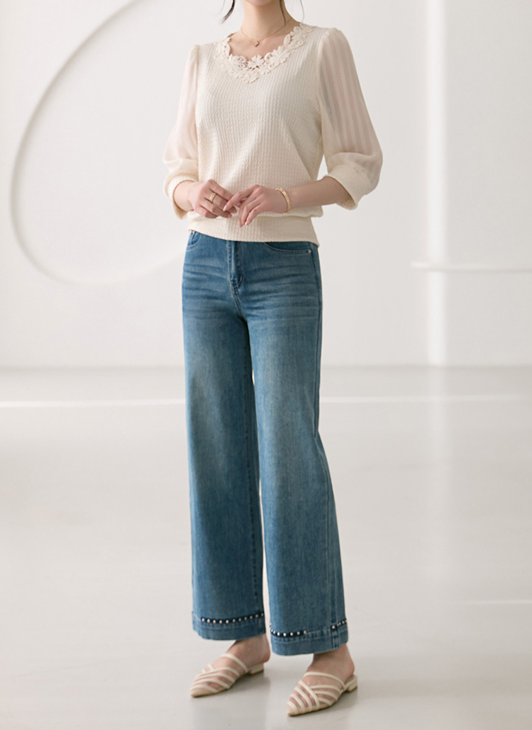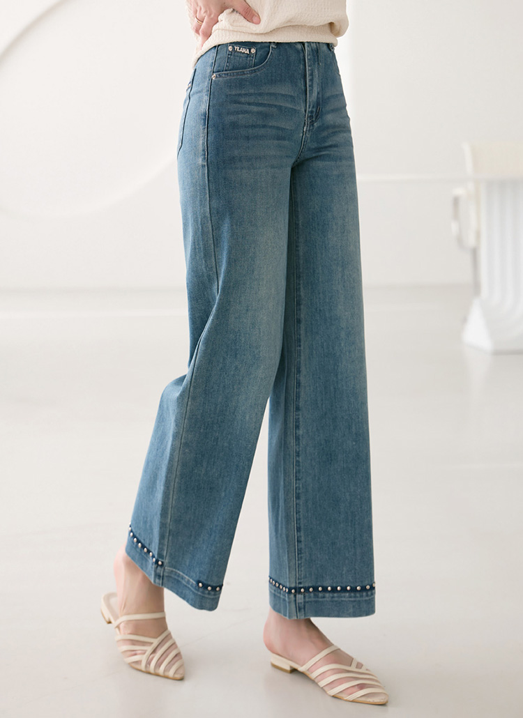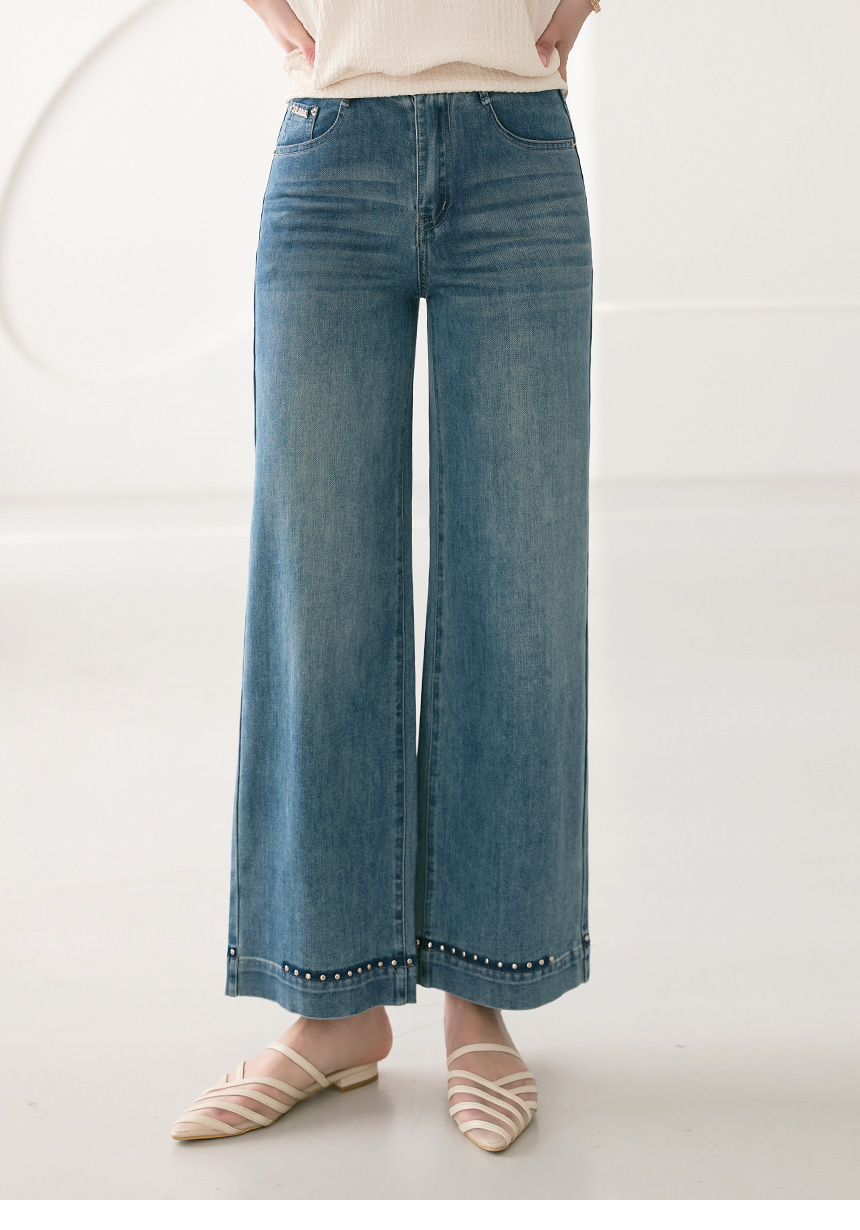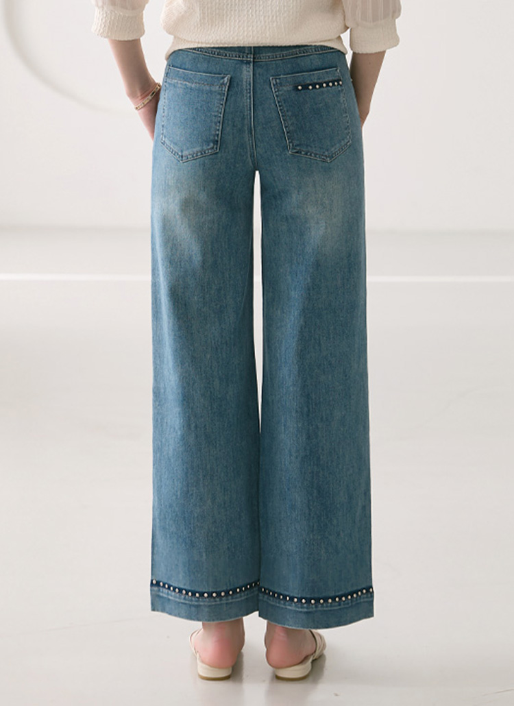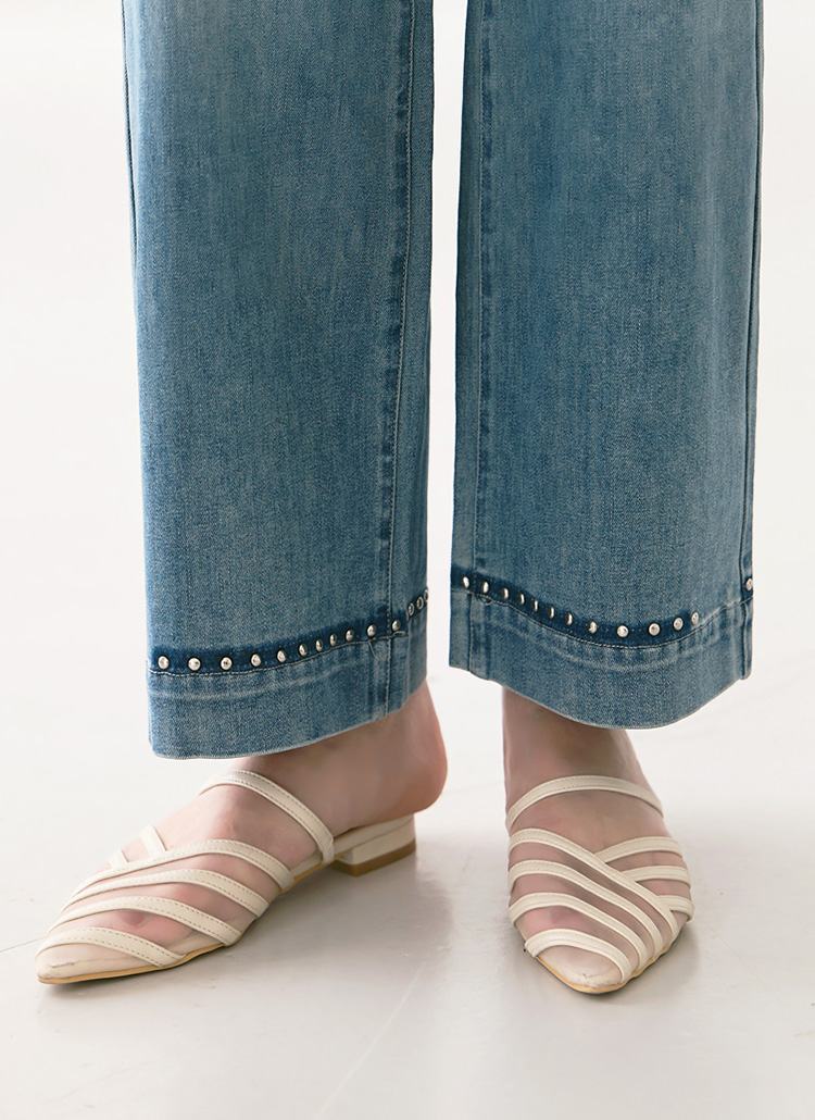 スタッズ付きスタートワイドデニムパンツ pt39573