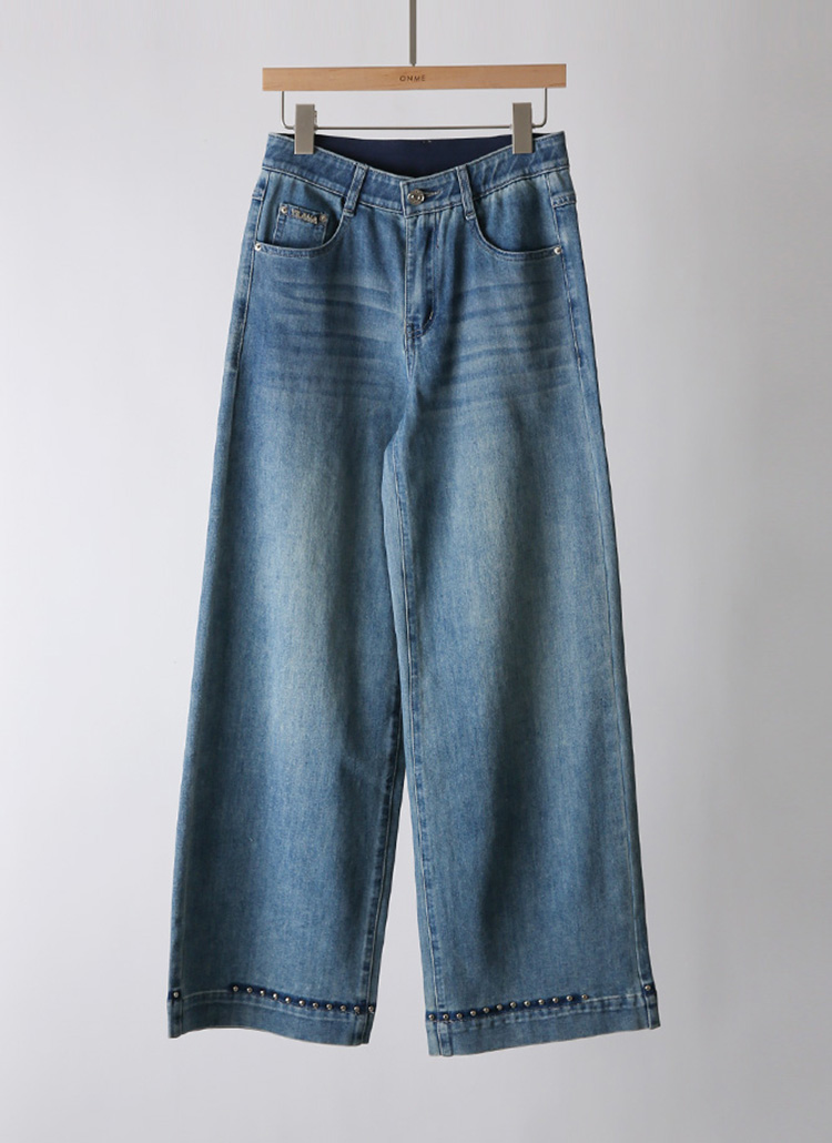 워싱 배색과 스터드 디테일로 심플하면서도 스타일리시한 멋을 선사하는 통 청바지에요 :)