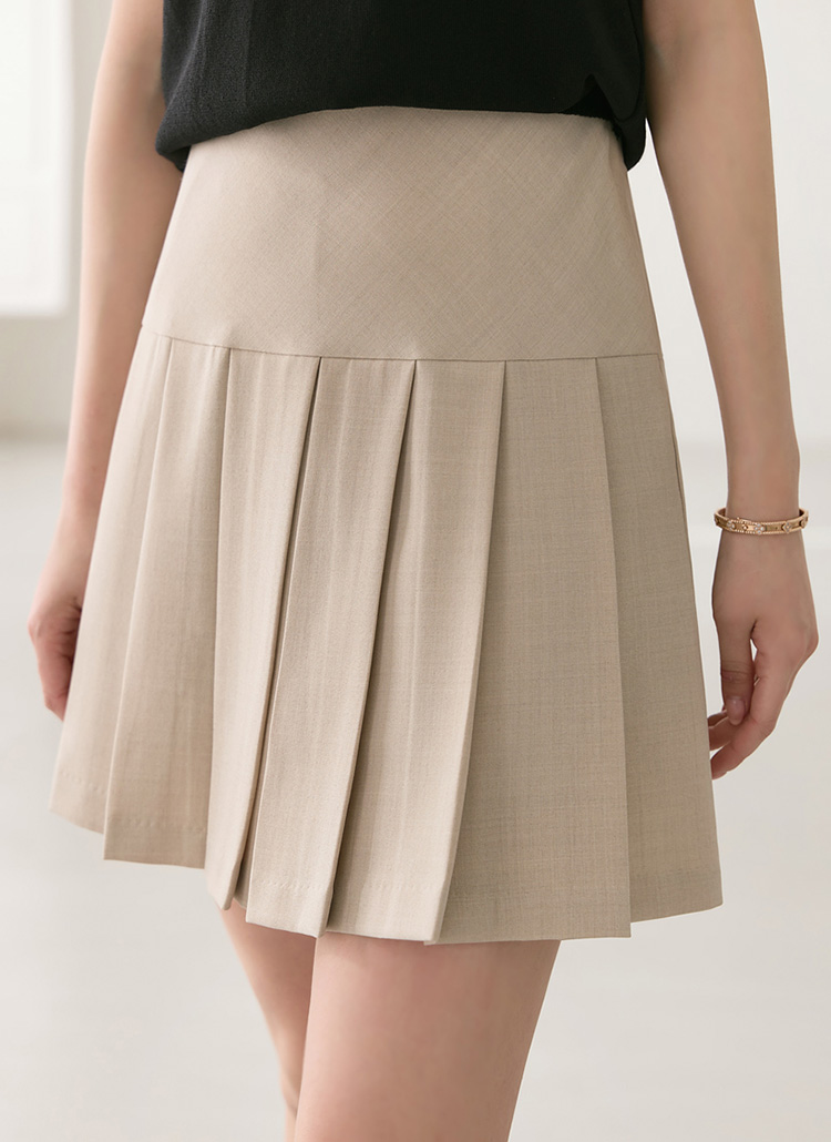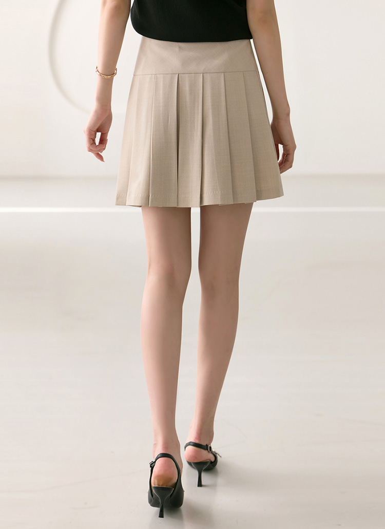 밑단 플리츠로 경쾌한 무드를 연출하며