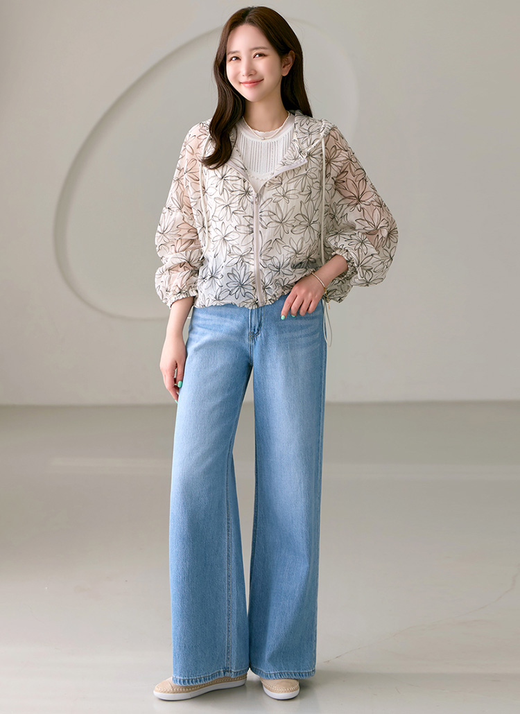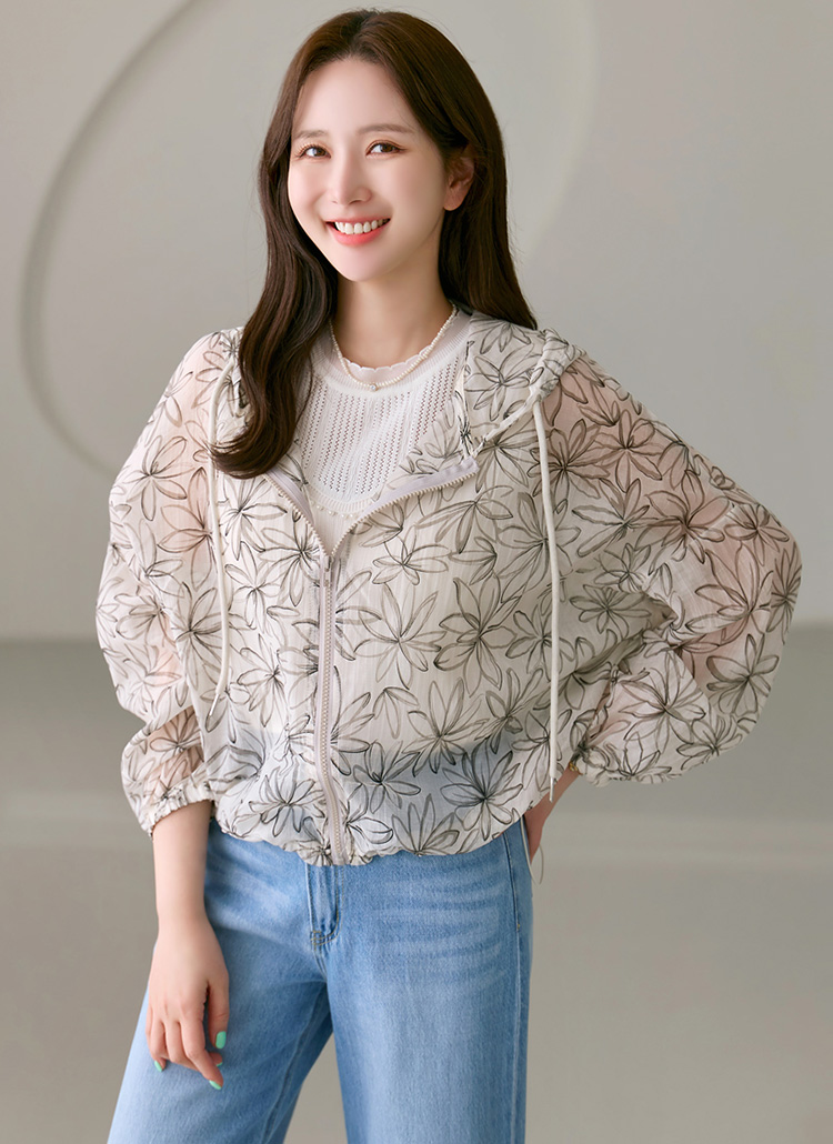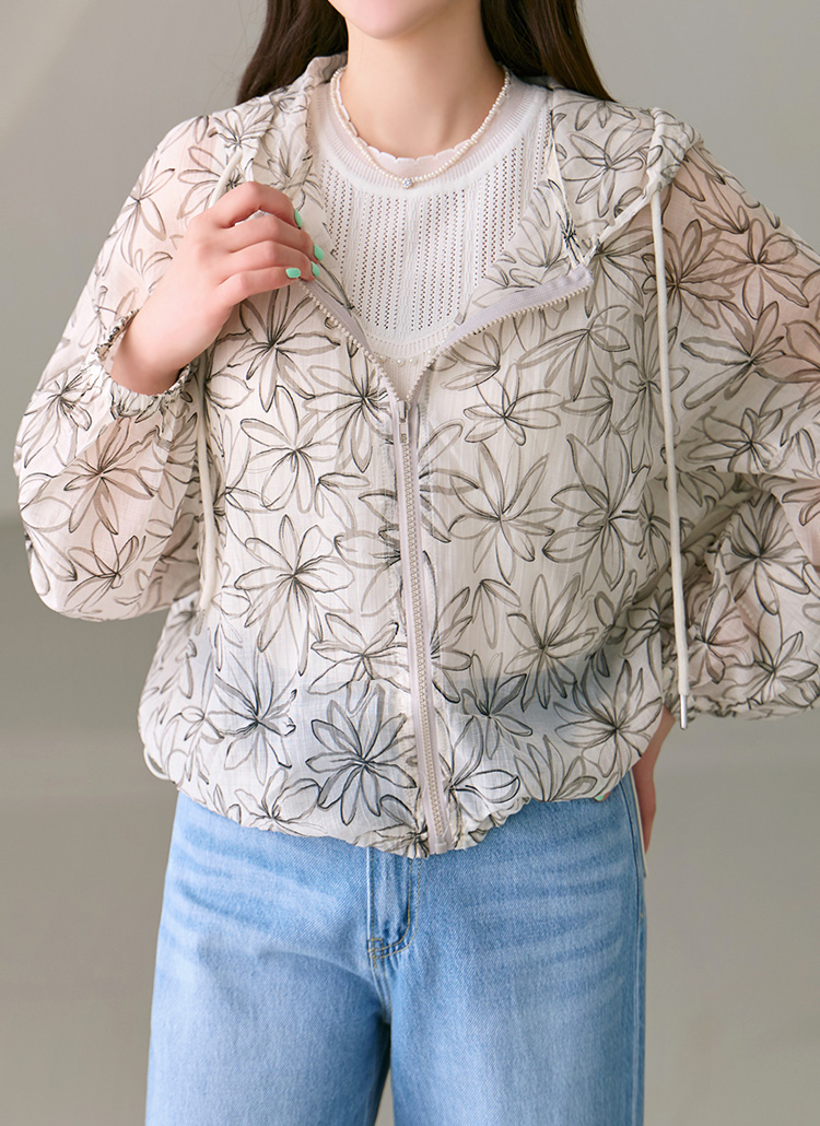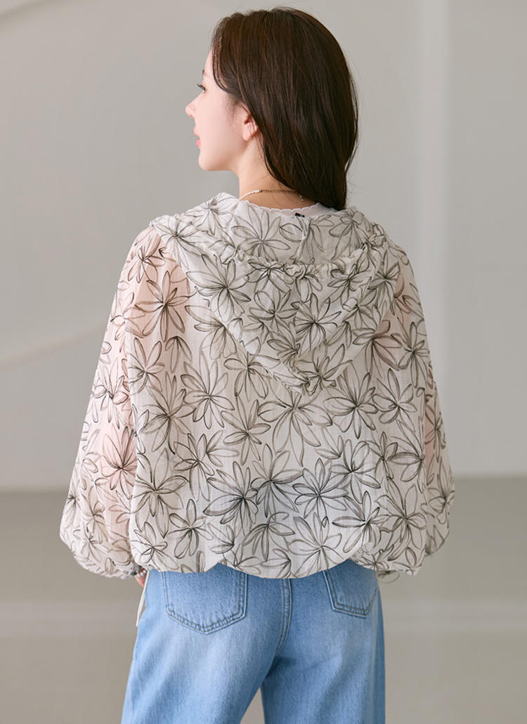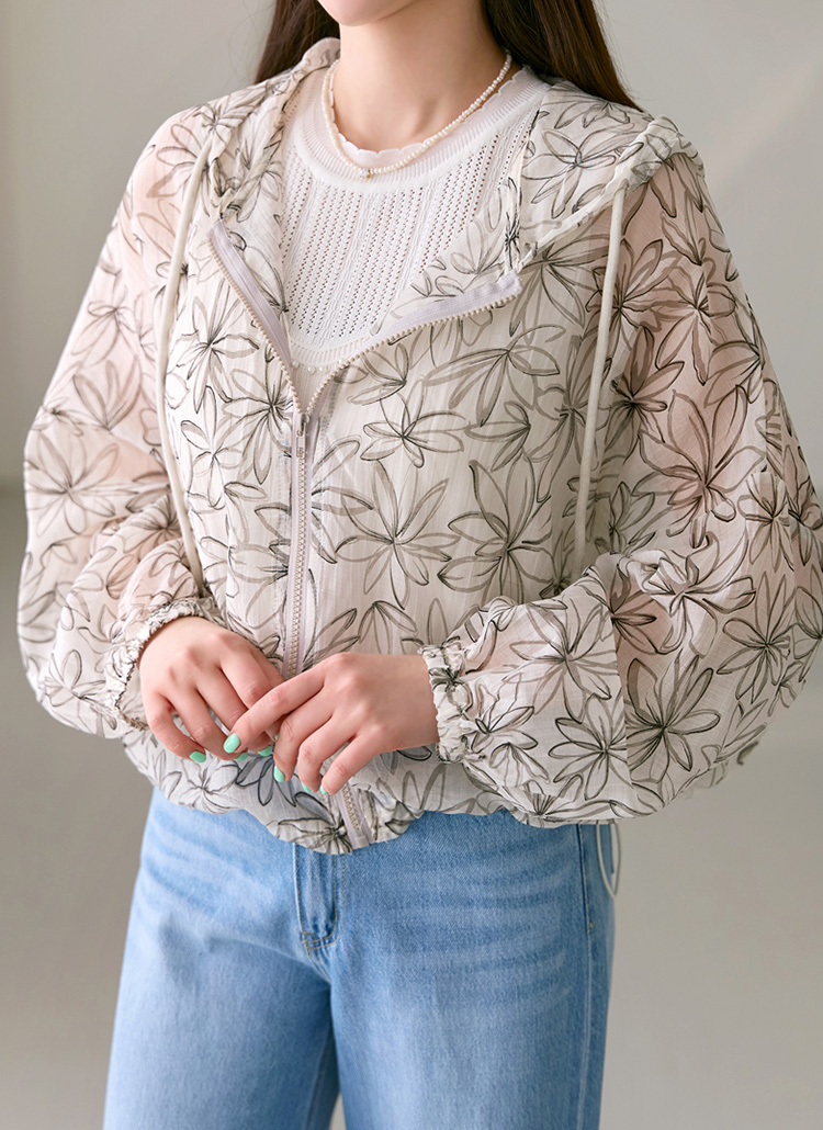 플라워 프린팅으로 여성스러운 포인트를 준 후드 점퍼에요 :)