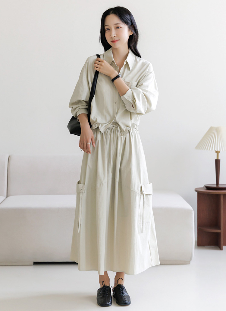 고퀄리티 소재의 코튼 나일론 밴딩 플레어 스커트에요 :)