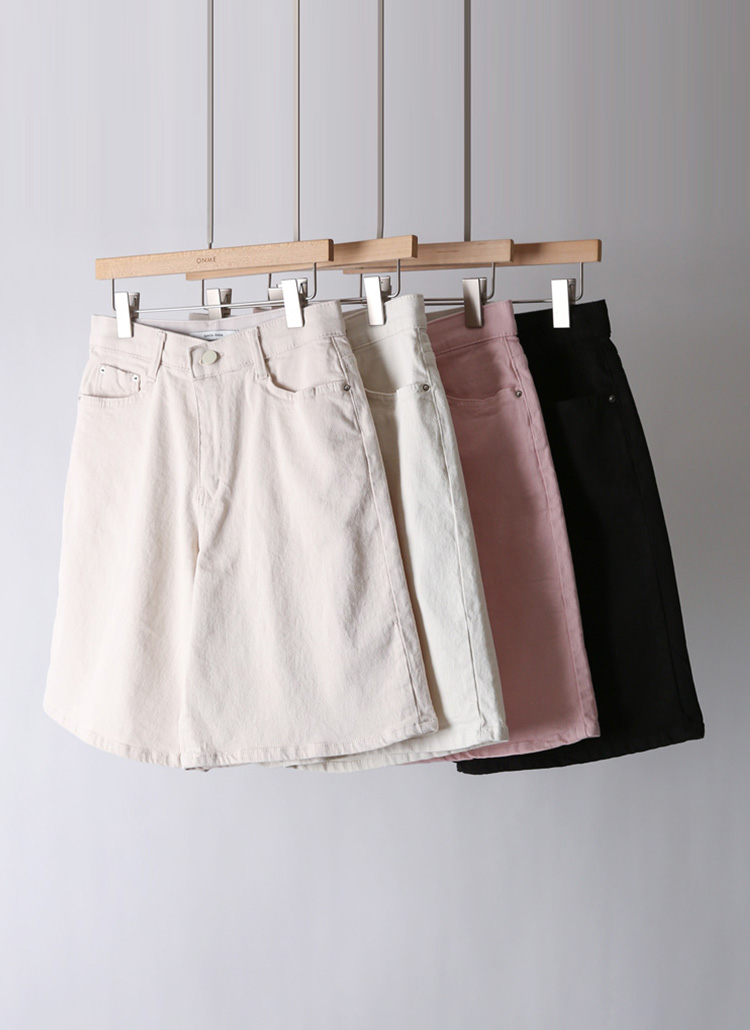 산뜻한 5부 기장으로 여름까지 시원하고 세련된 무드로 즐기시기 좋은 면 반바지에요 :)