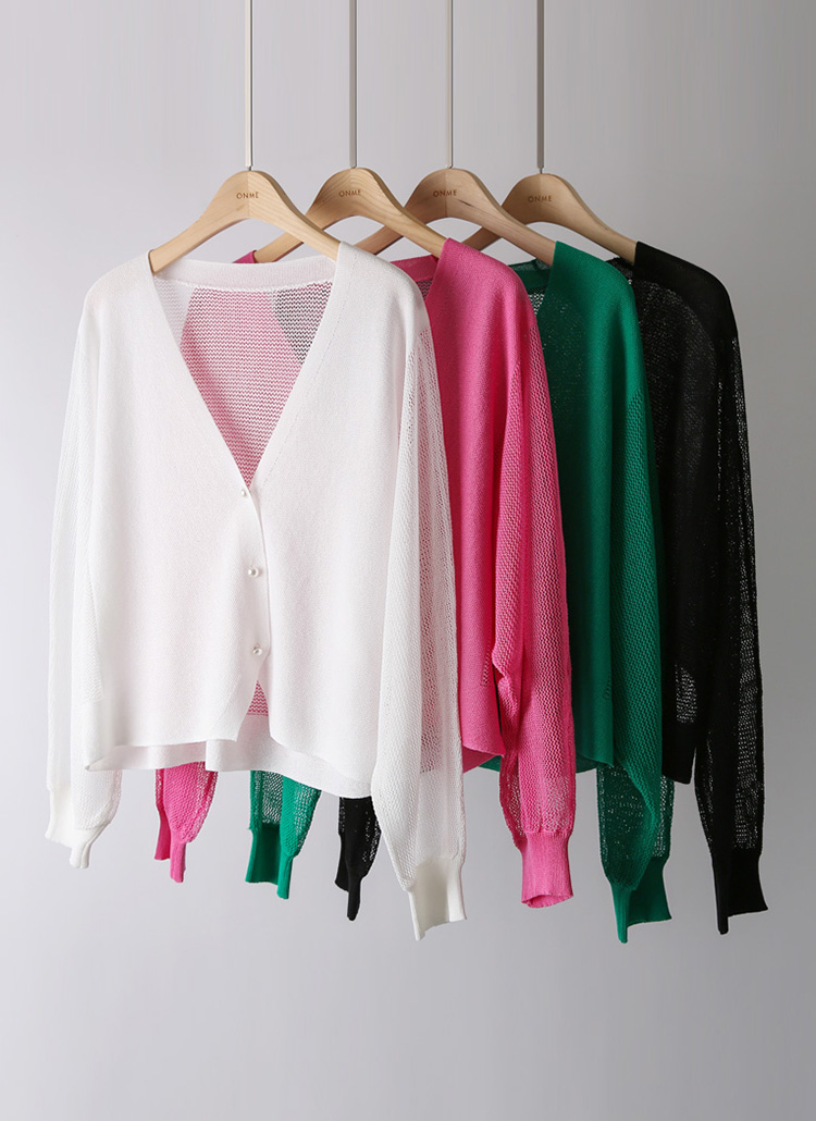 パールボタン透かしニットⅤネックカーディガン cd39816