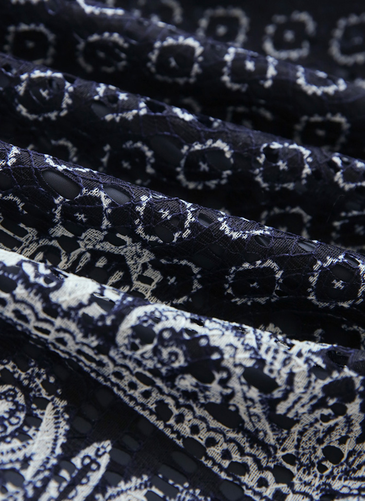 펀칭 레이스 원단 위로 페이즐리 프린팅이 더해져