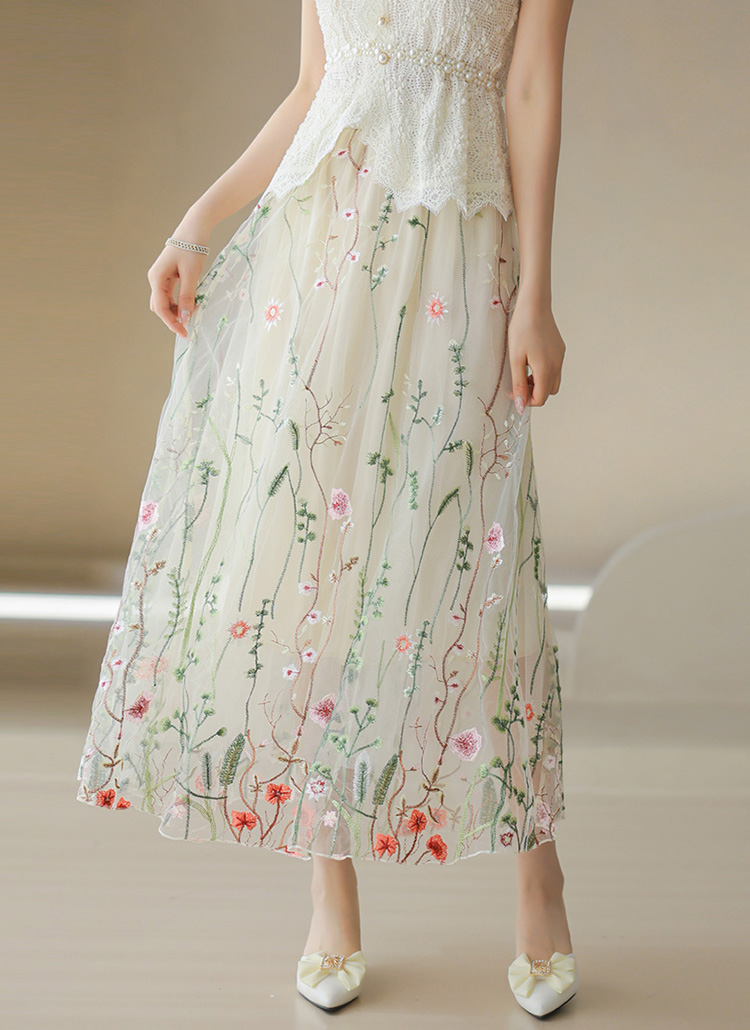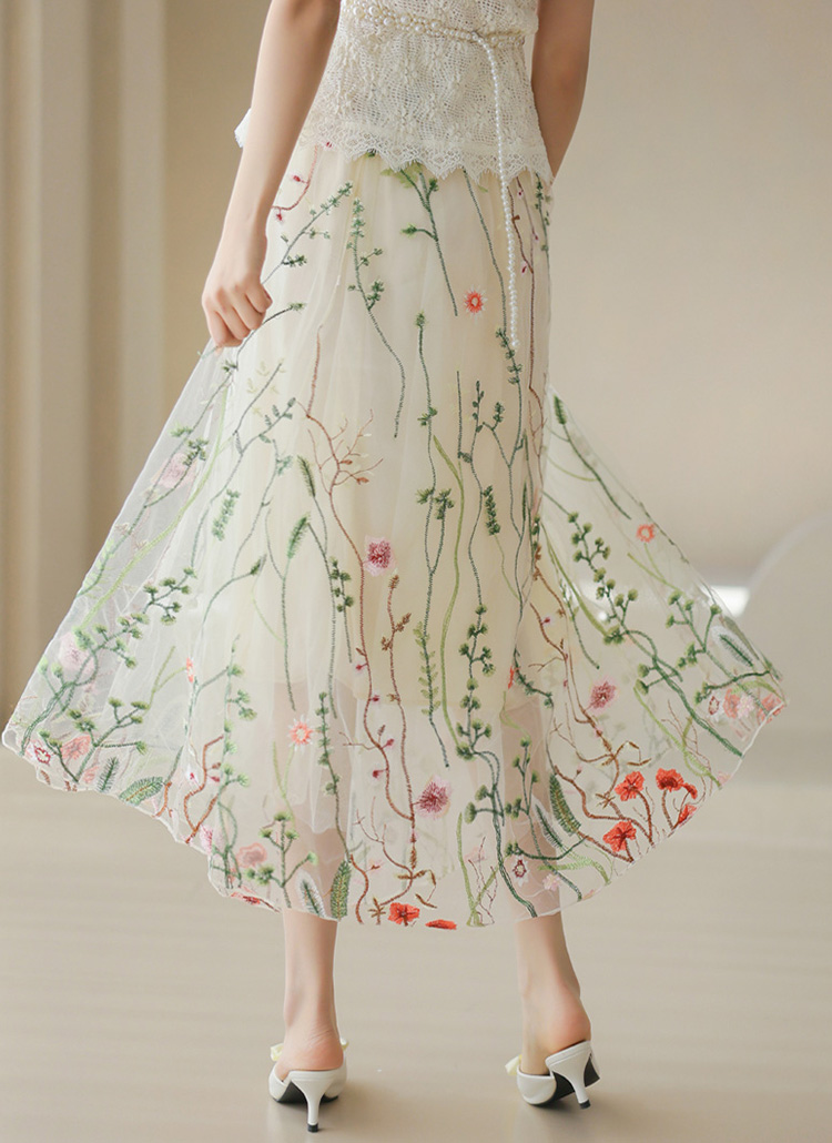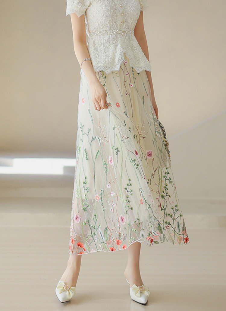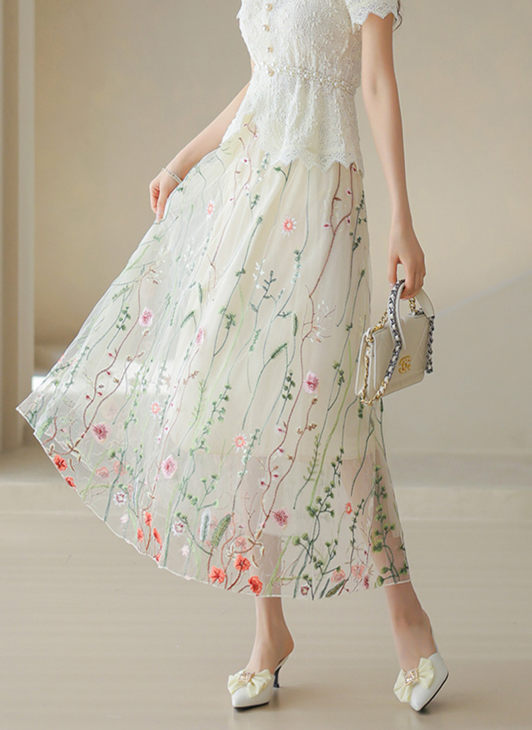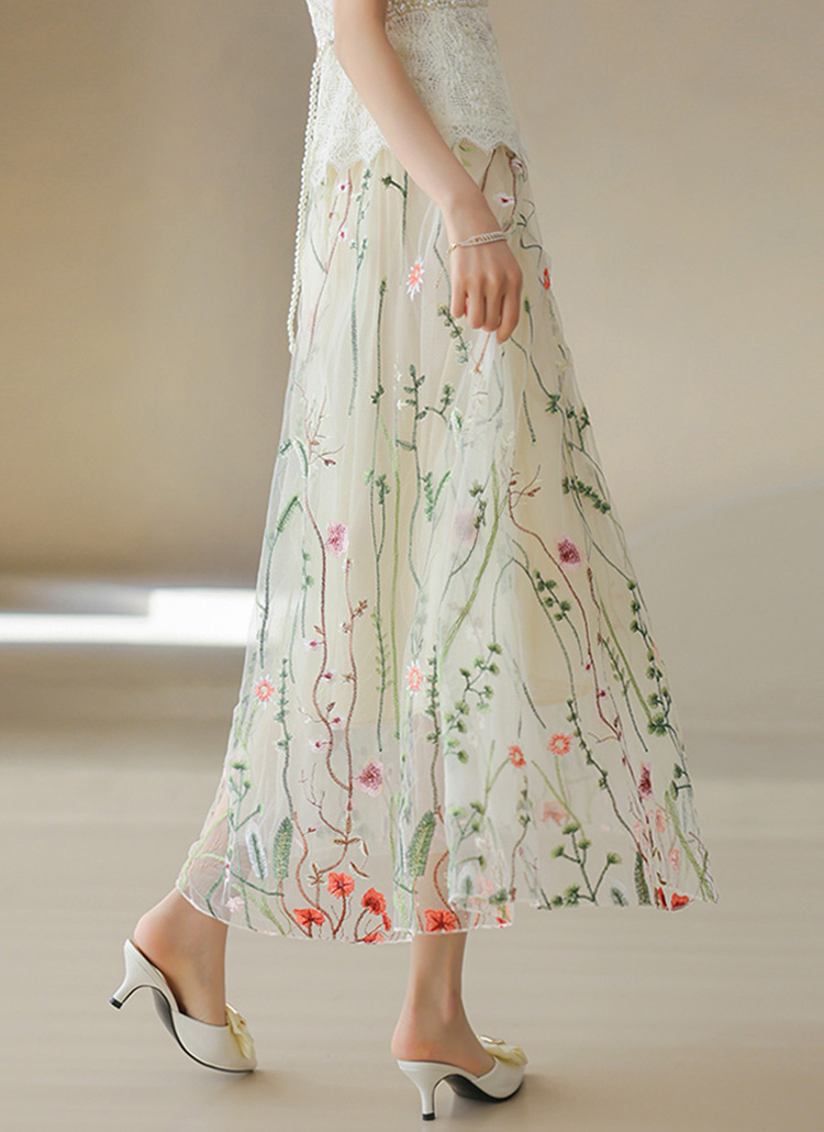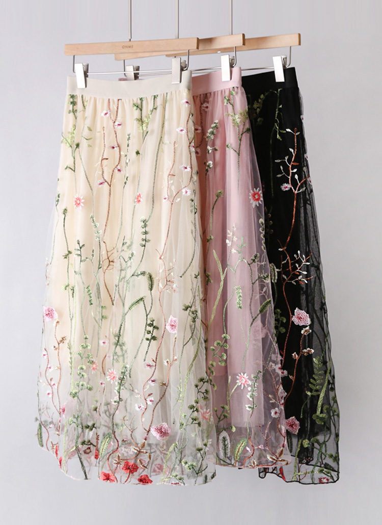 フラワー刺繍オーガンジーロングスカート sk39864