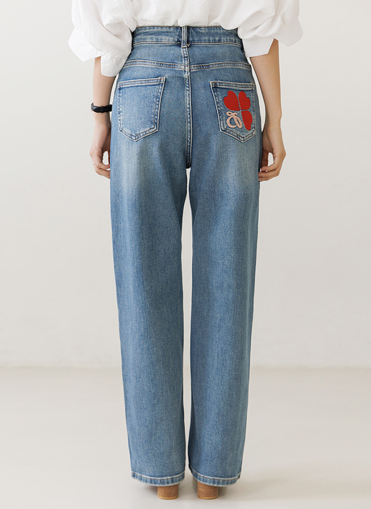 [THE ONME]ハート刺繍セミワイドデニムパンツ pt39909