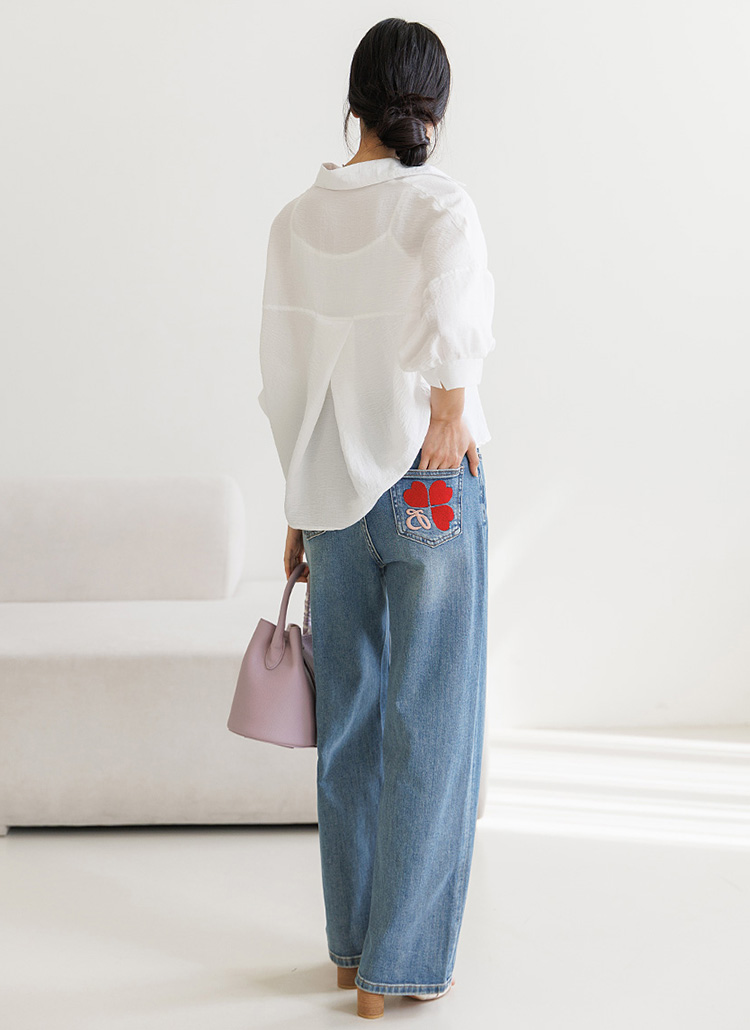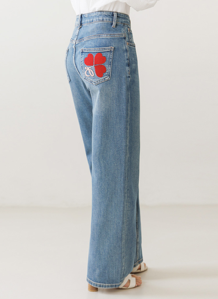 [THE ONME]ハート刺繍セミワイドデニムパンツ pt39909