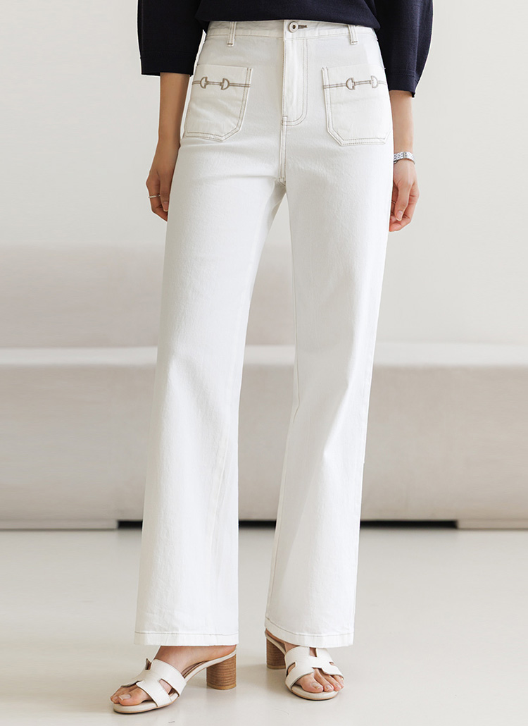 [THE ONME] チェーン刺繍フロントポケットストレートコットンパンツ pt39945