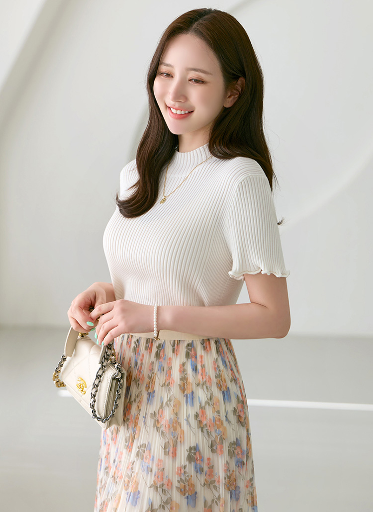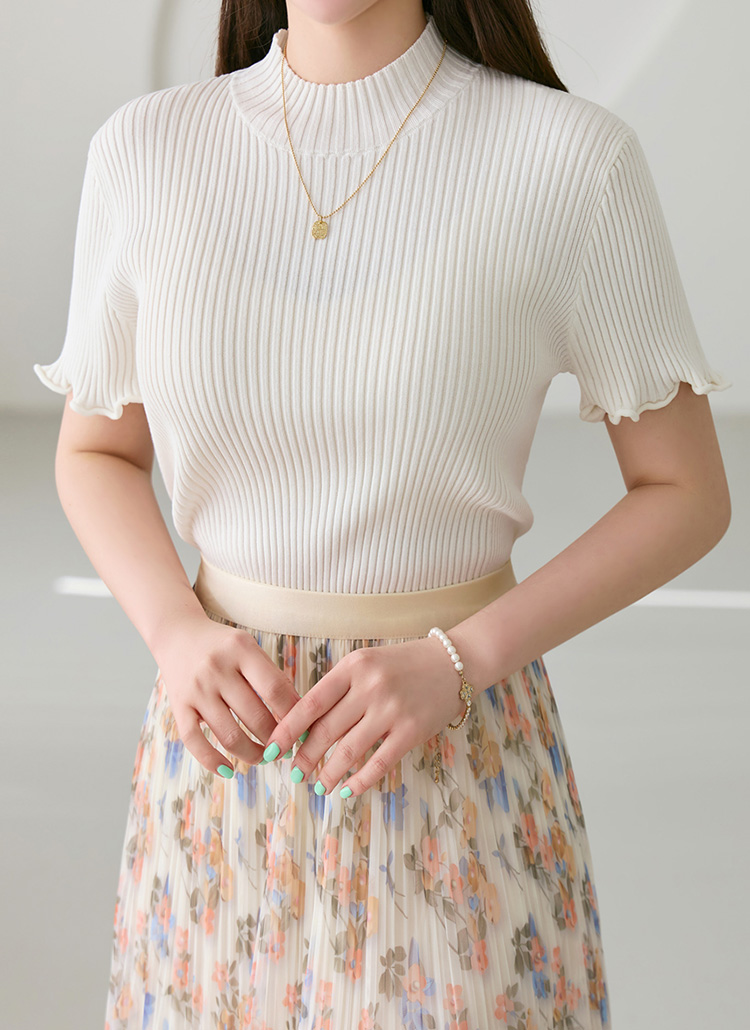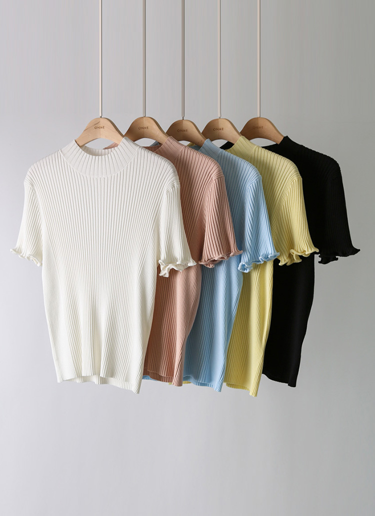 【5色展開】メローステッチハイネック半袖リブニット nt39969