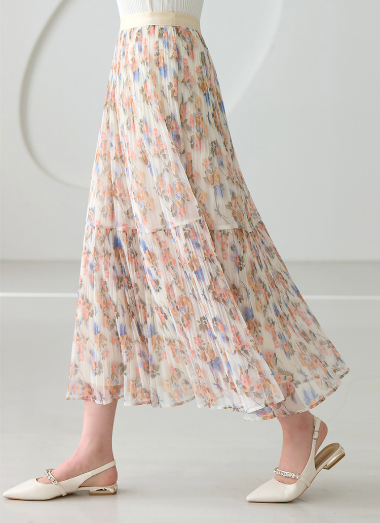 여리여리한 플라워 패턴에 잔잔한 플리츠가 더해져