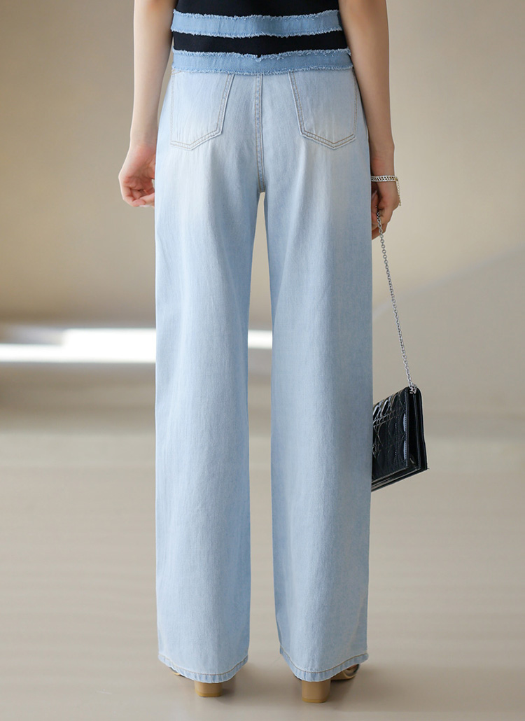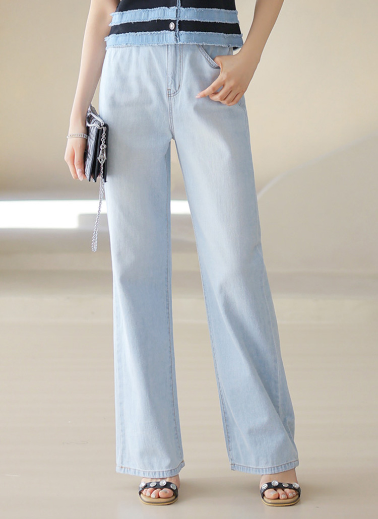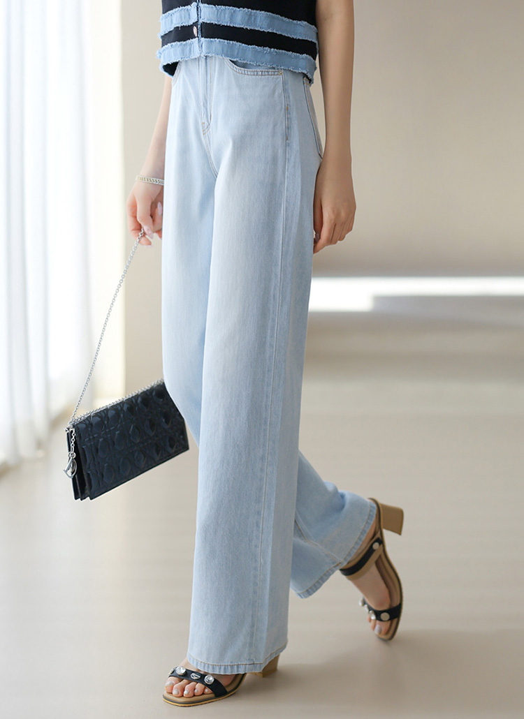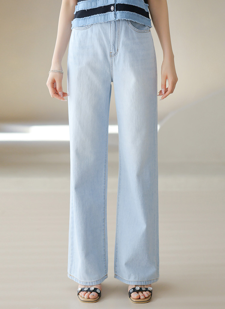 시원한 아이스 블루톤에 일자로 쫙 뻗어내려오는 세미와이드 핏으로