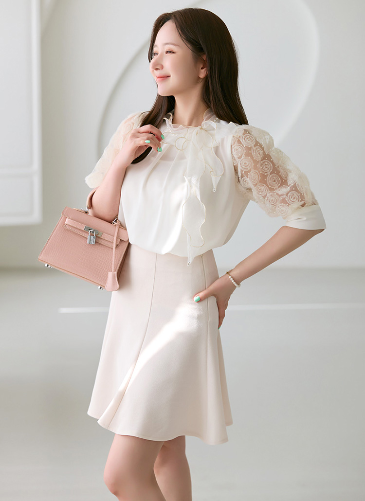 세련된 절개 디테일로 볼륨감을 살린 플레어 미니 스커트에요 :)