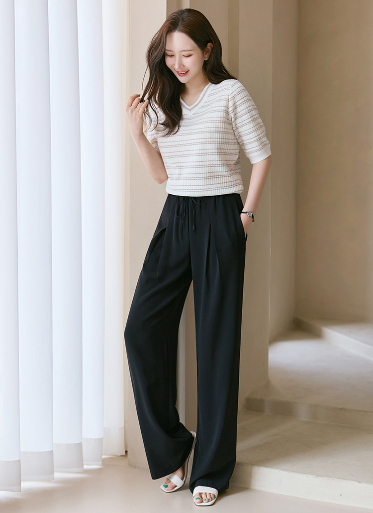 허리 스트링으로 캐주얼한 무드도 느낄 수 있어