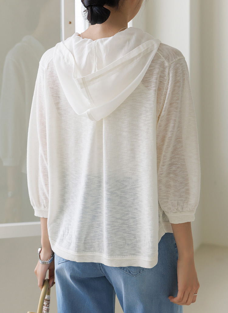 [THE ONME] 7分袖シースルースラブパーカー cd40050