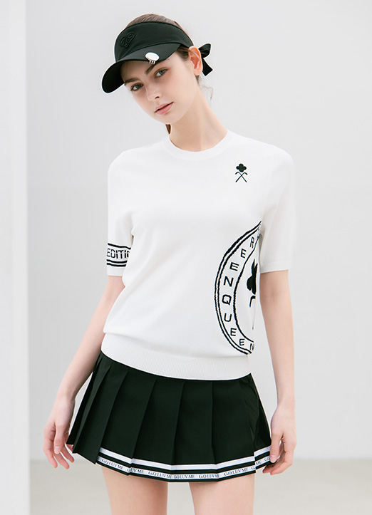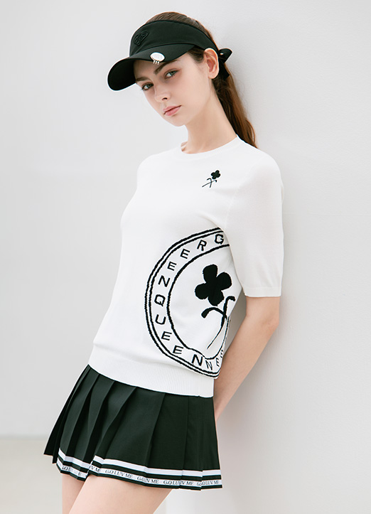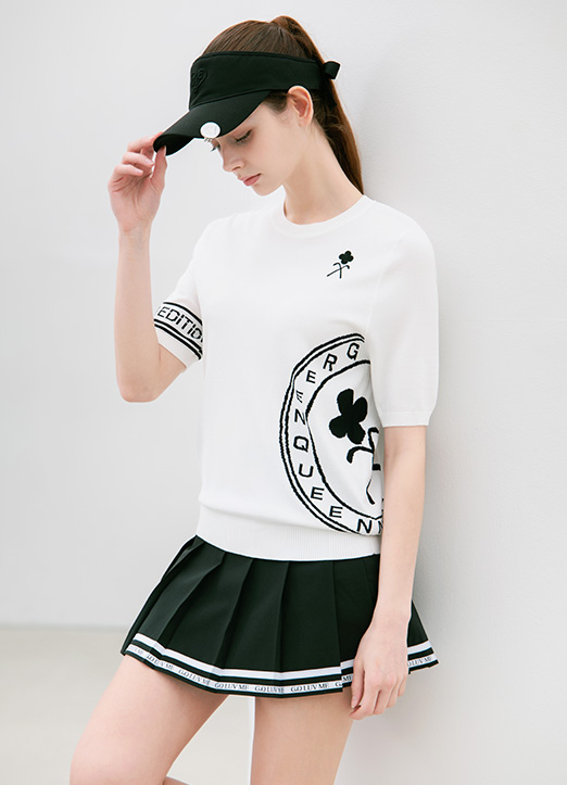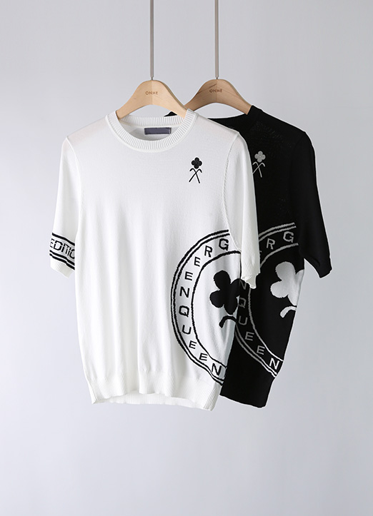 [冷感素材][QoG] レタリングロゴクルーネックニット nt40113