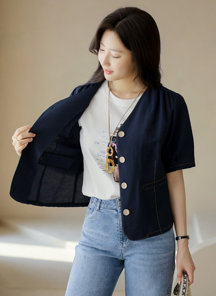 【企画特価】ノーカラー Ⅴネック半袖リネンジャケット jk40134