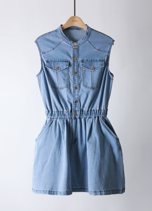 [QoG] ノースリーブストレッチデニムワンピース op40143 (インナーパンツ付き)