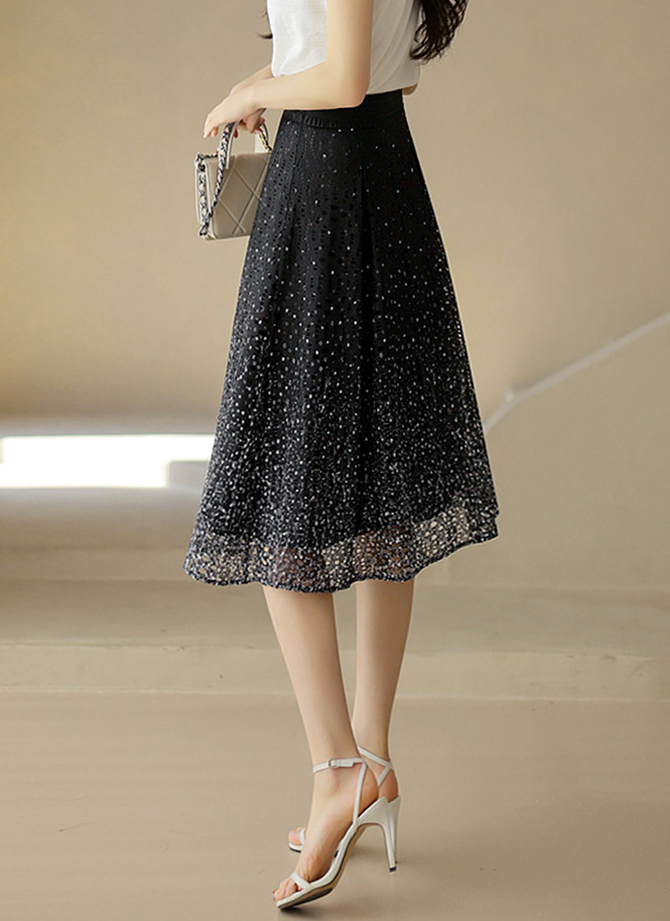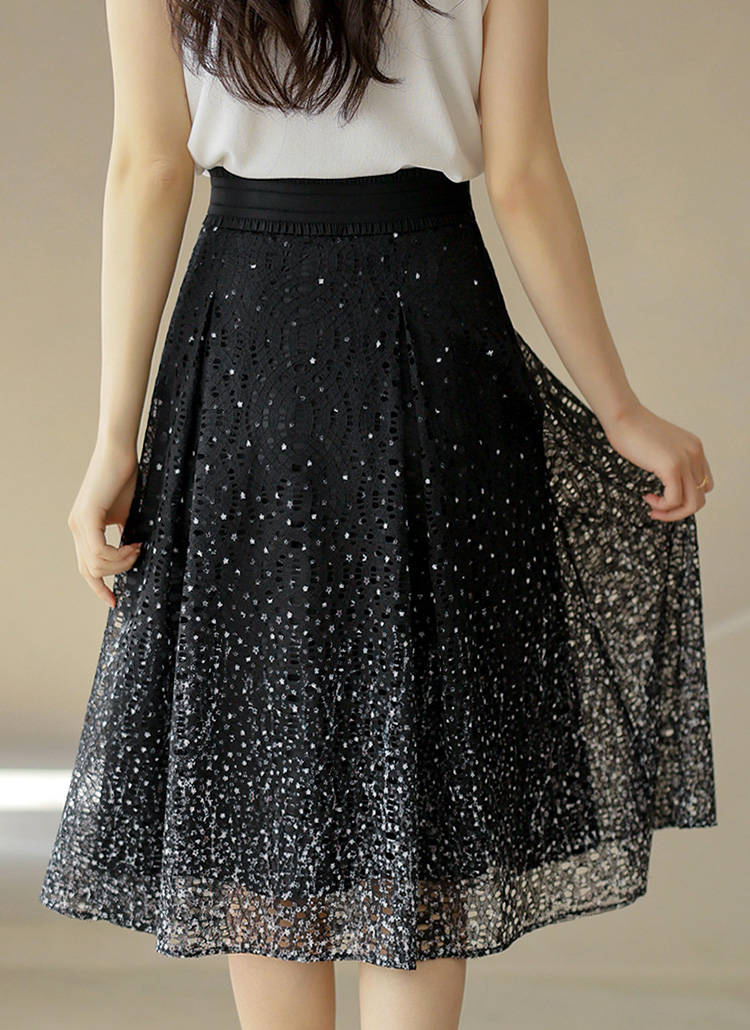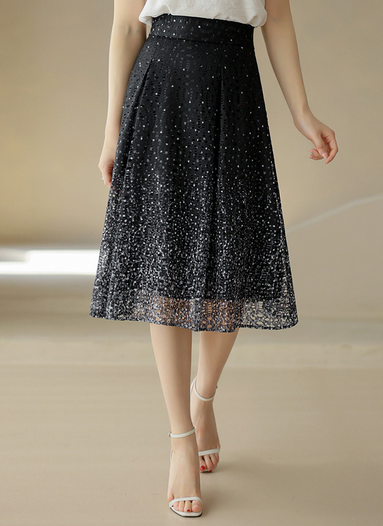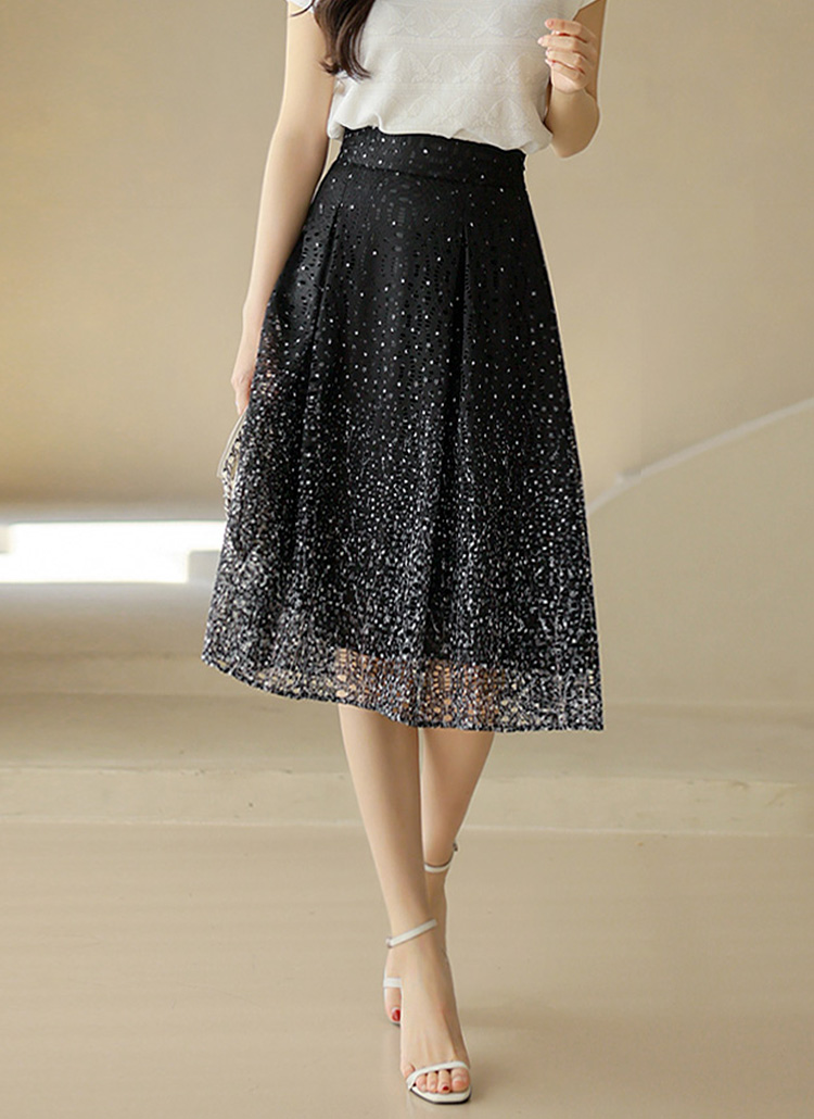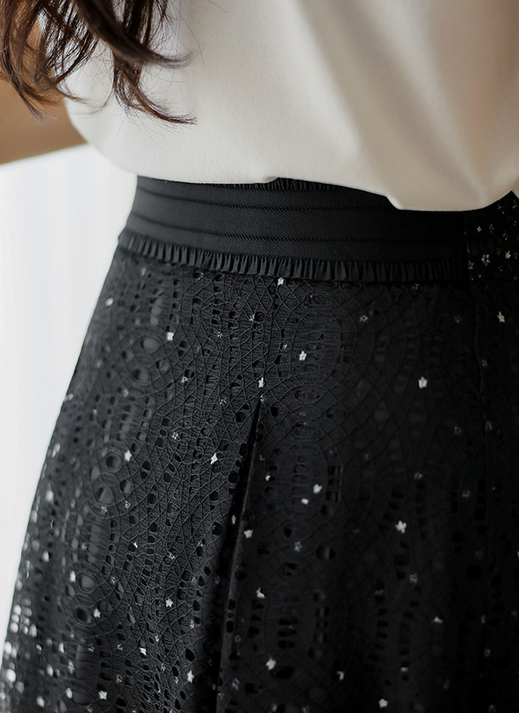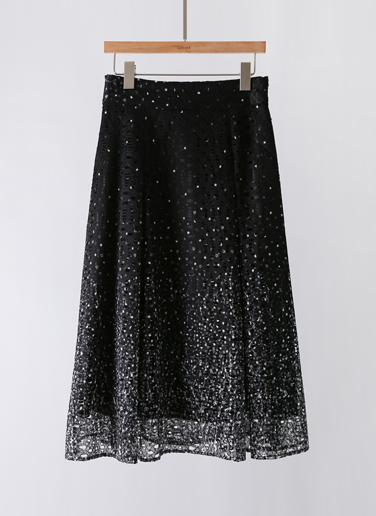 [LouisAngel] グラデーションパンチングレースタックプリーツスカート sk40155