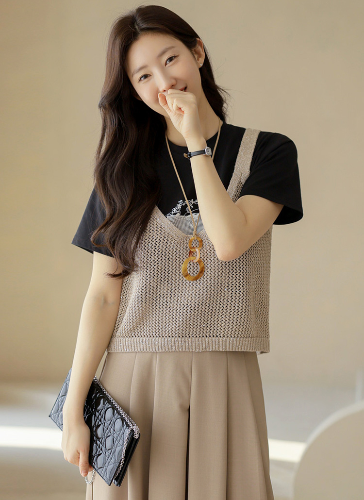 깔끔한 아웃핏에 프린팅 포인트가 돋보이며,