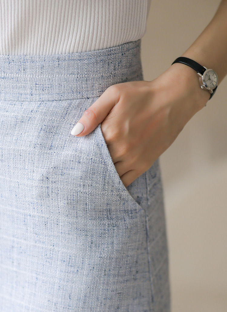 [LouisAngel] フロントスリットAラインブルーツイードスカート sk40170