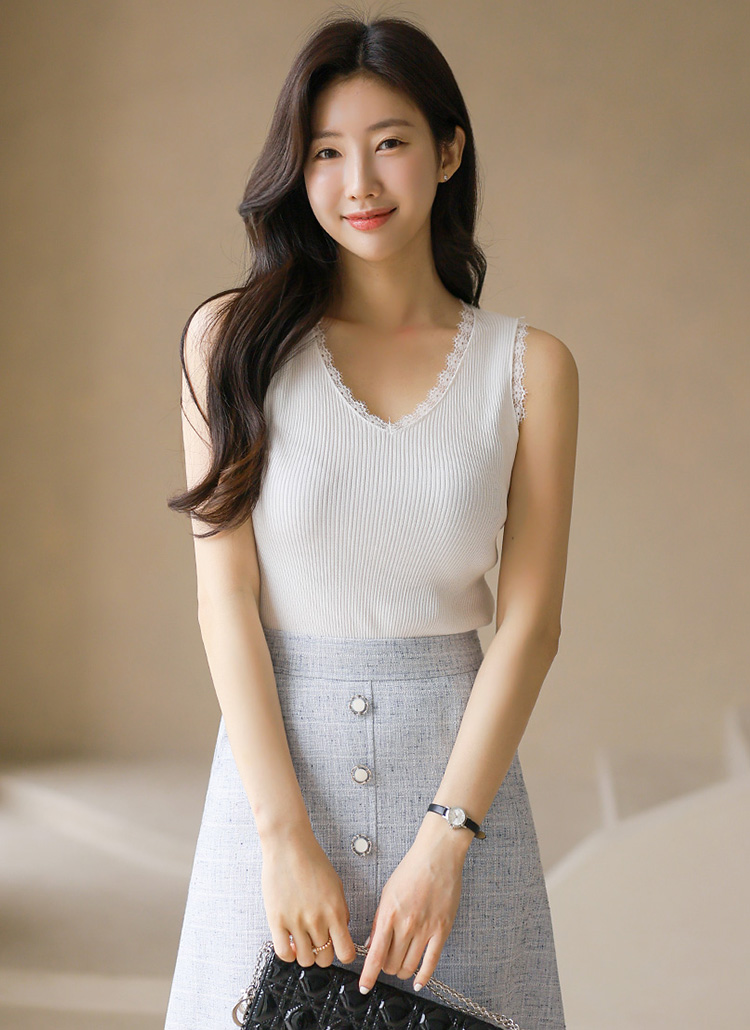 여성스러움이 가득 느껴지는 골지 나시에요 :)
