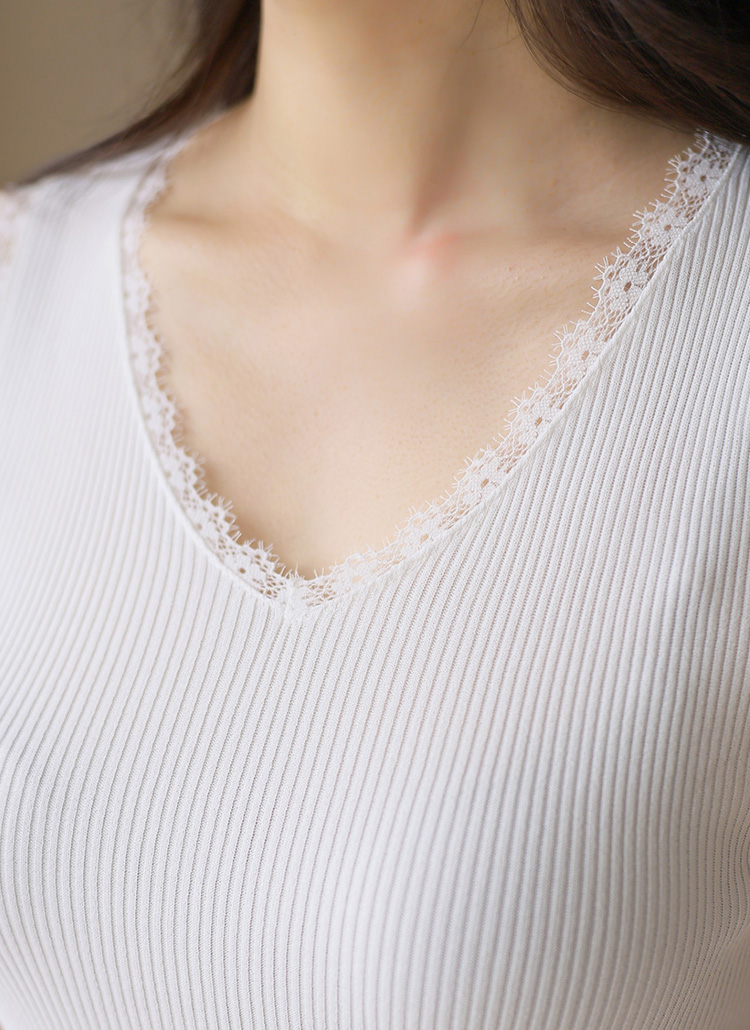 브이넥 디자인으로 쇄골 라인이 드러나 여리여리한 무드를 연출해주며,