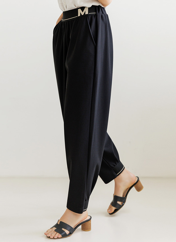 허리에 레터링이 더해진 밴딩으로 트렌디함을 강조하며
