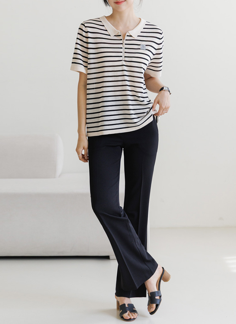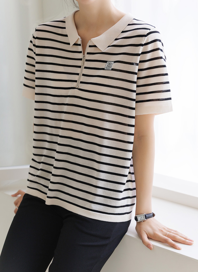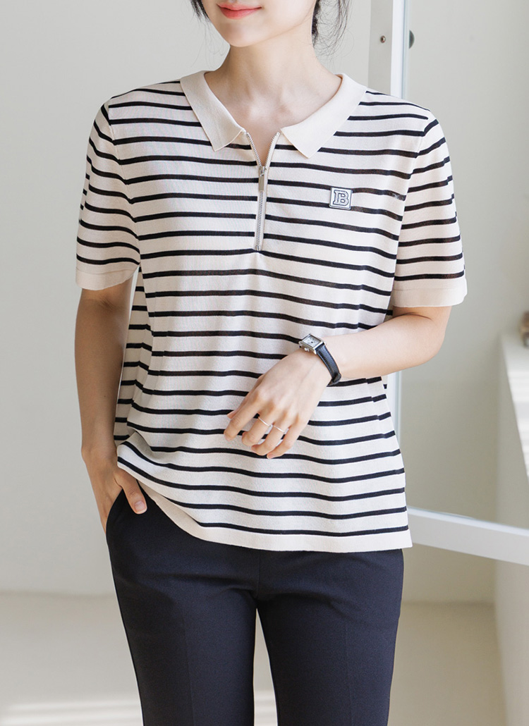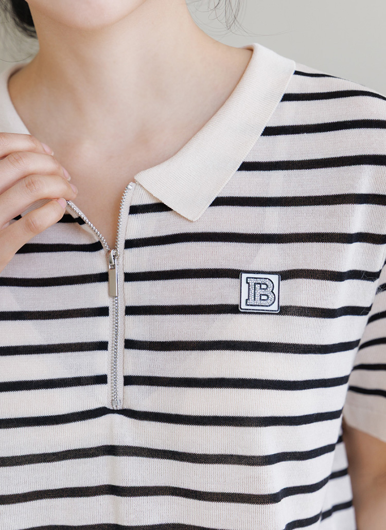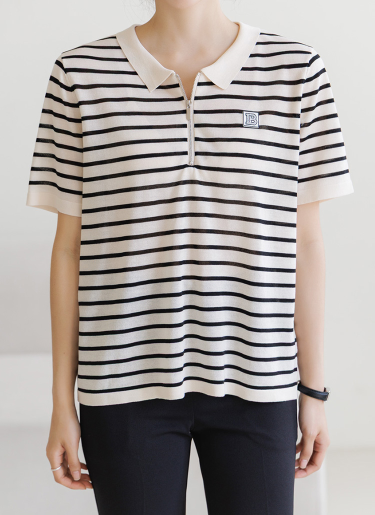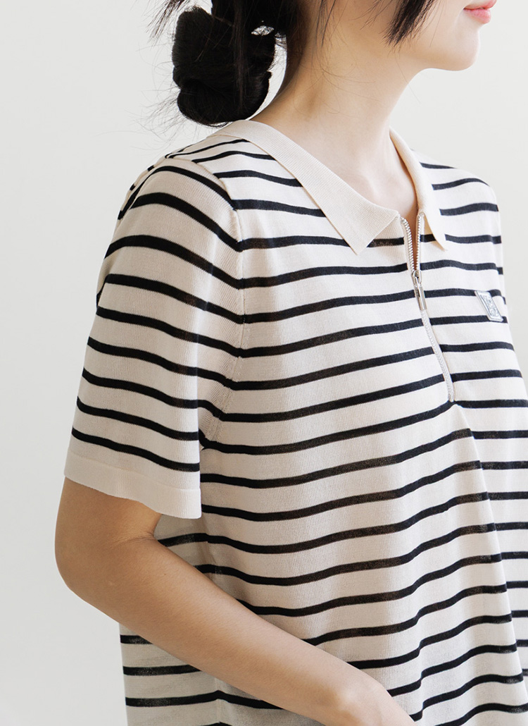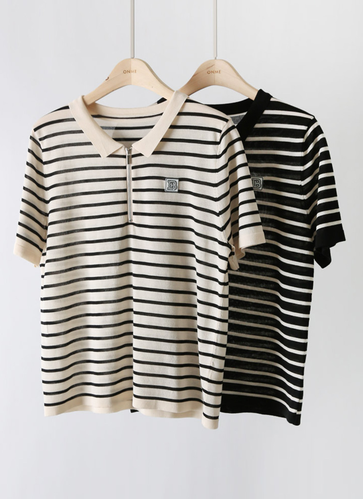 [THE ONME] ボーダーハーフジップポロニット nt40260