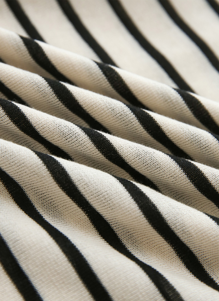 세련된 스트라이프 패턴에 비즈 레터링 패치로
