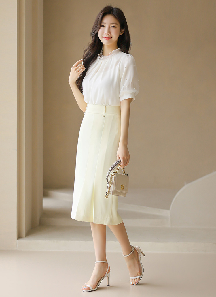 와이드한 비죠에 미니 골드 버클로 포인트를 준 H라인 스커트에요 :)