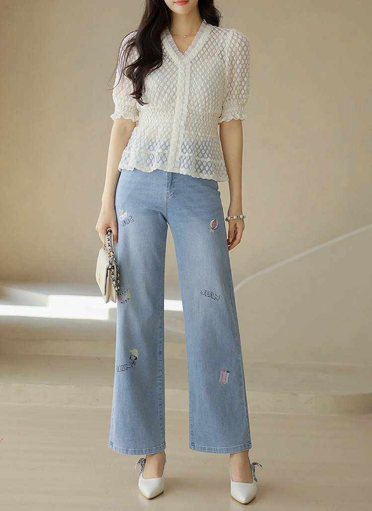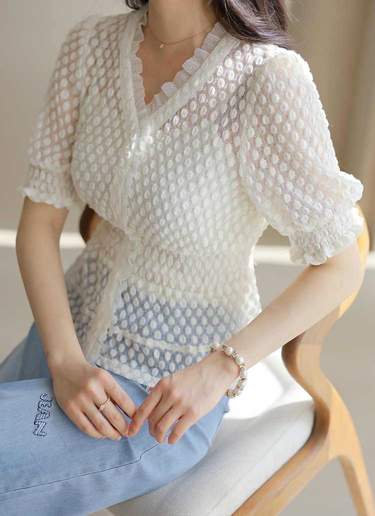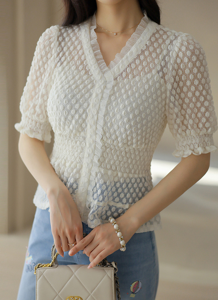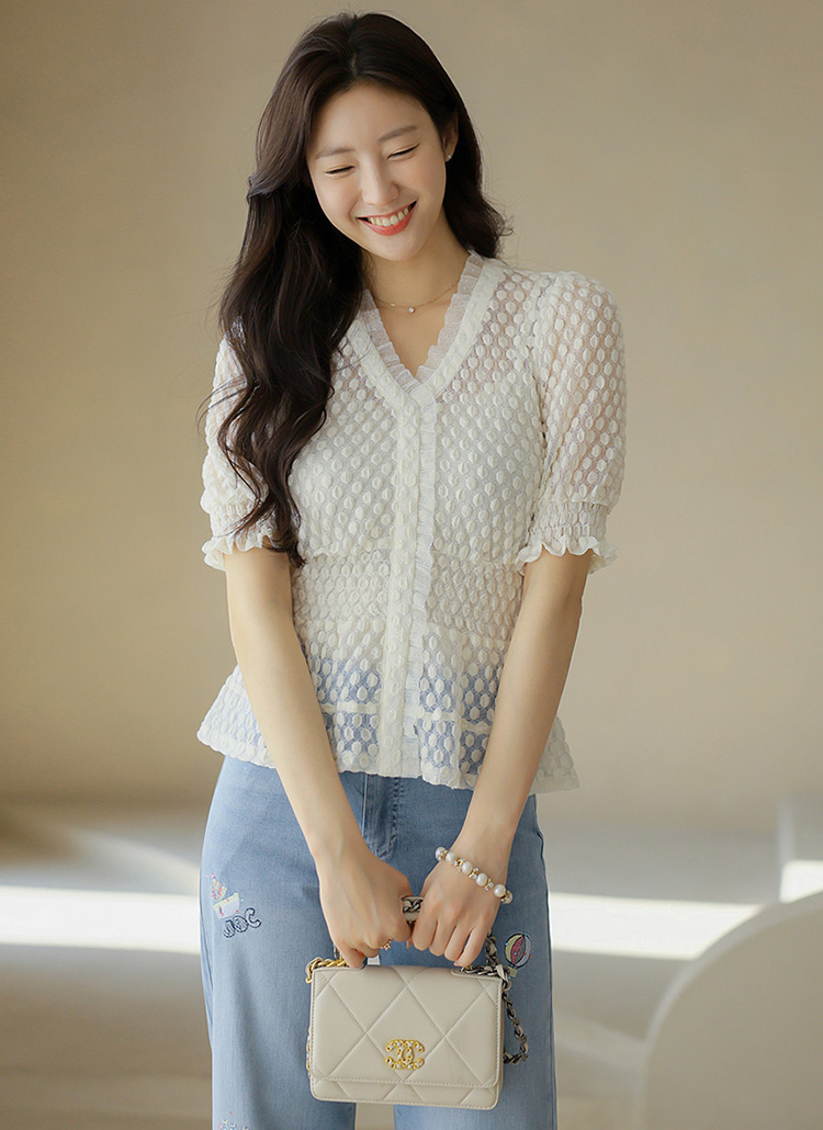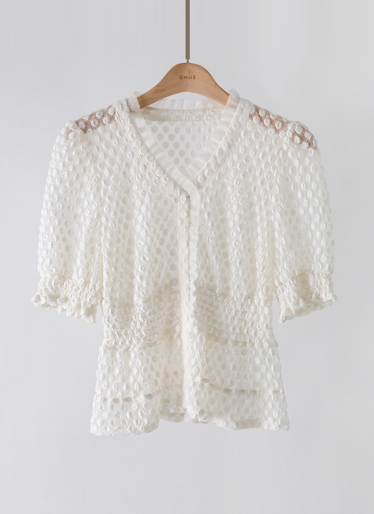 [LouisAngel] エンボスドット柄 Ⅴネックシアーブラウス bl40329