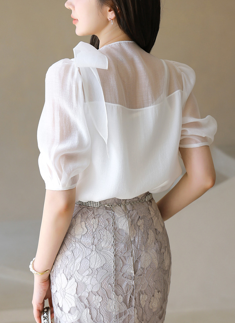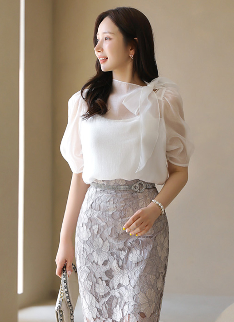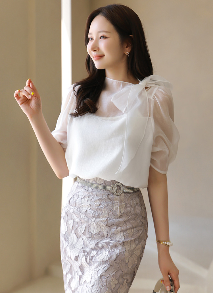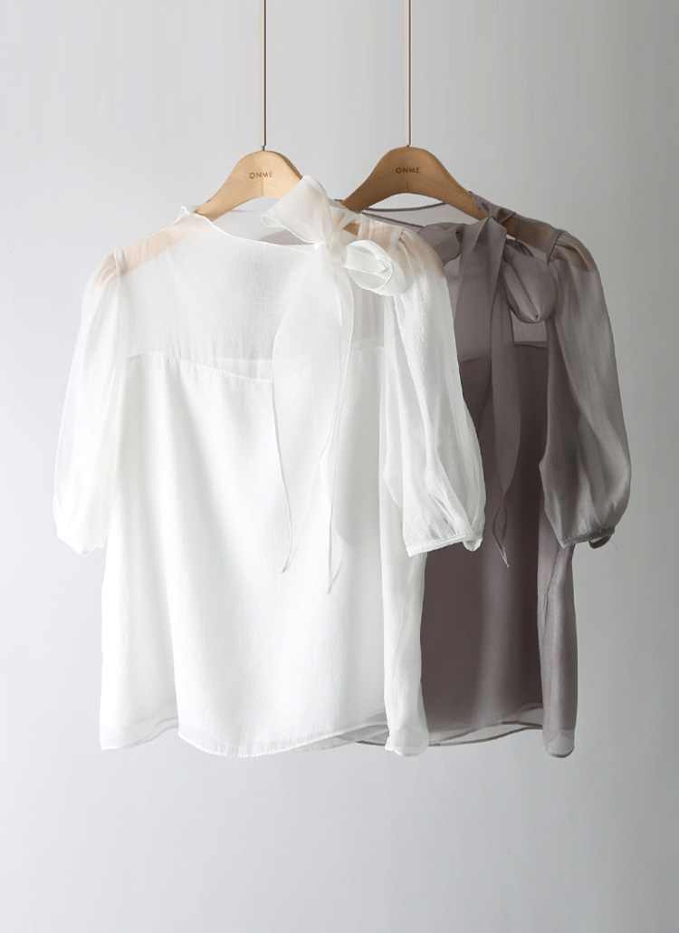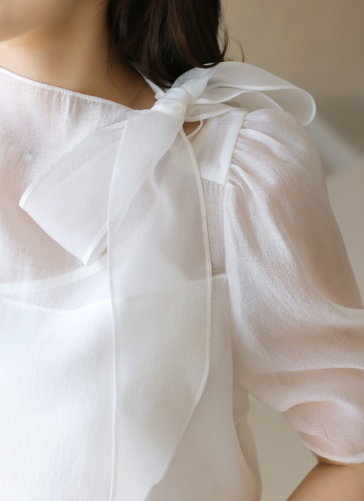 サイドリボンパフスリーブシアーブラウス bl40383