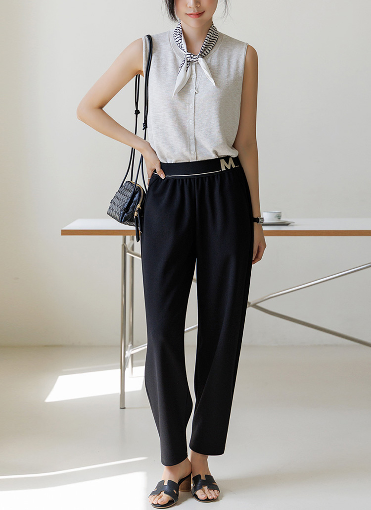 깔끔한 라운드 넥 디자인으로 단정하면서도 모던한 분위기를 연출하며