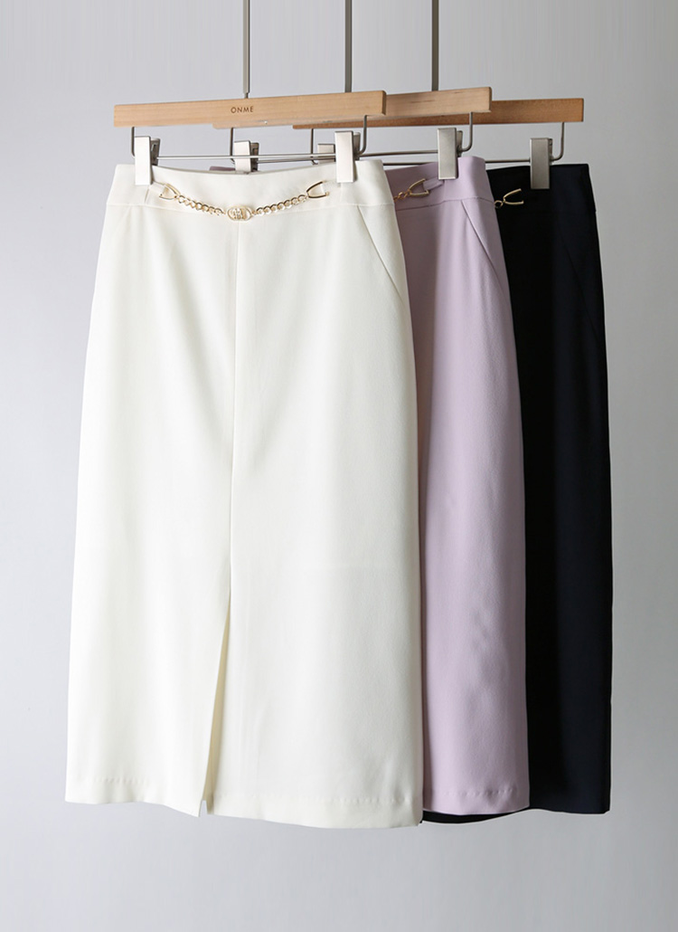 ゴールドチェーン付きフロントスリットペンシルスカート sk40506