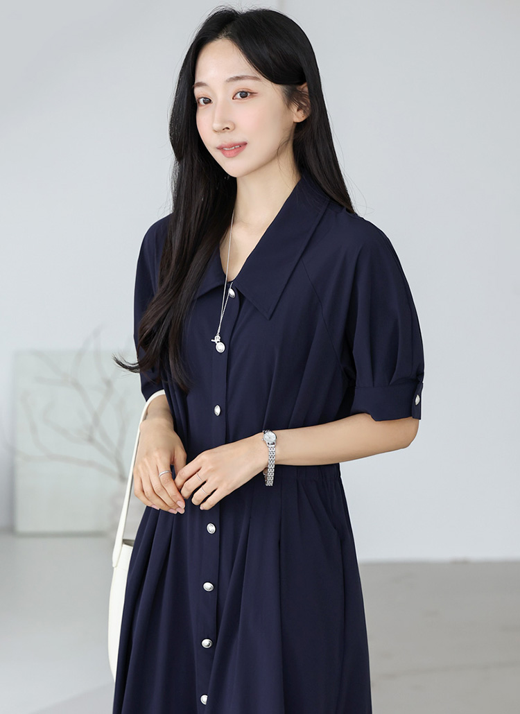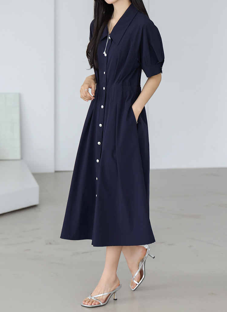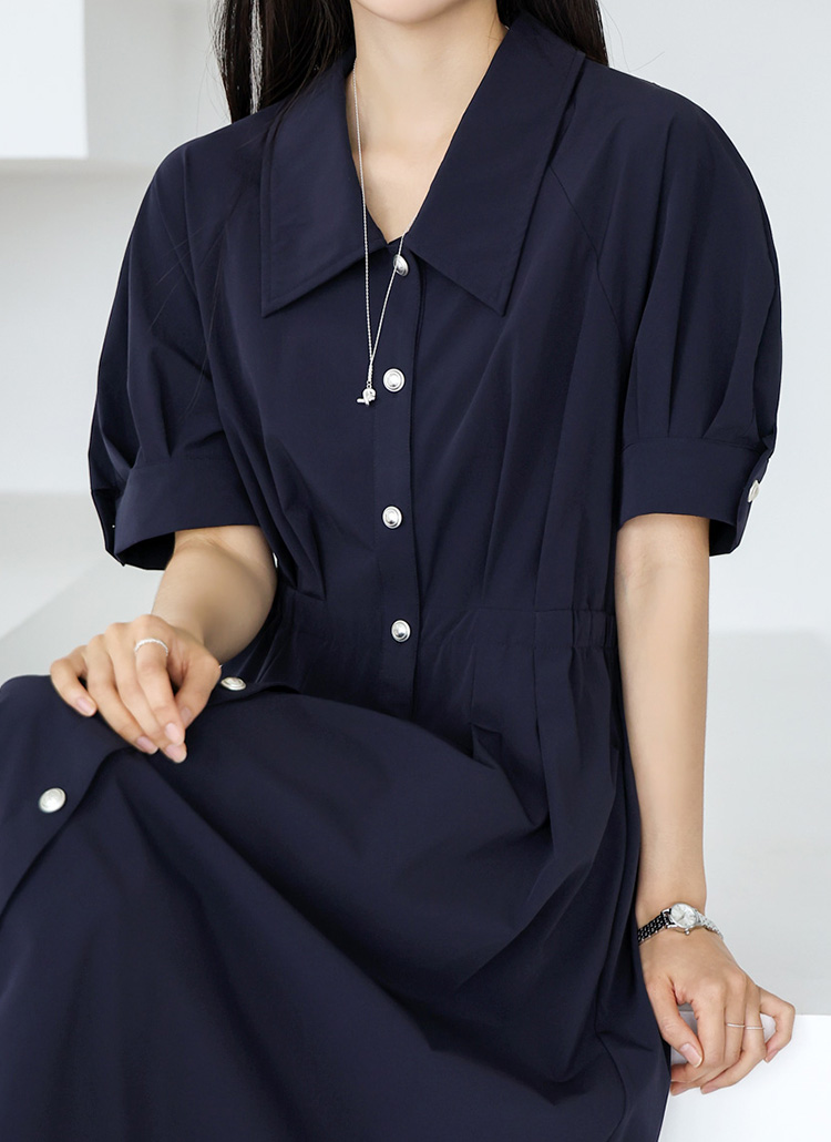 [THE ONME] シルバーボタン タックフレアワンピース op40536