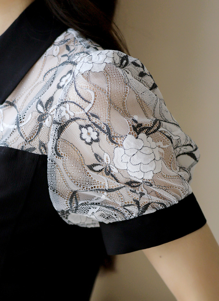 시스루한 투톤 레이스에 카라 디자인을 더해