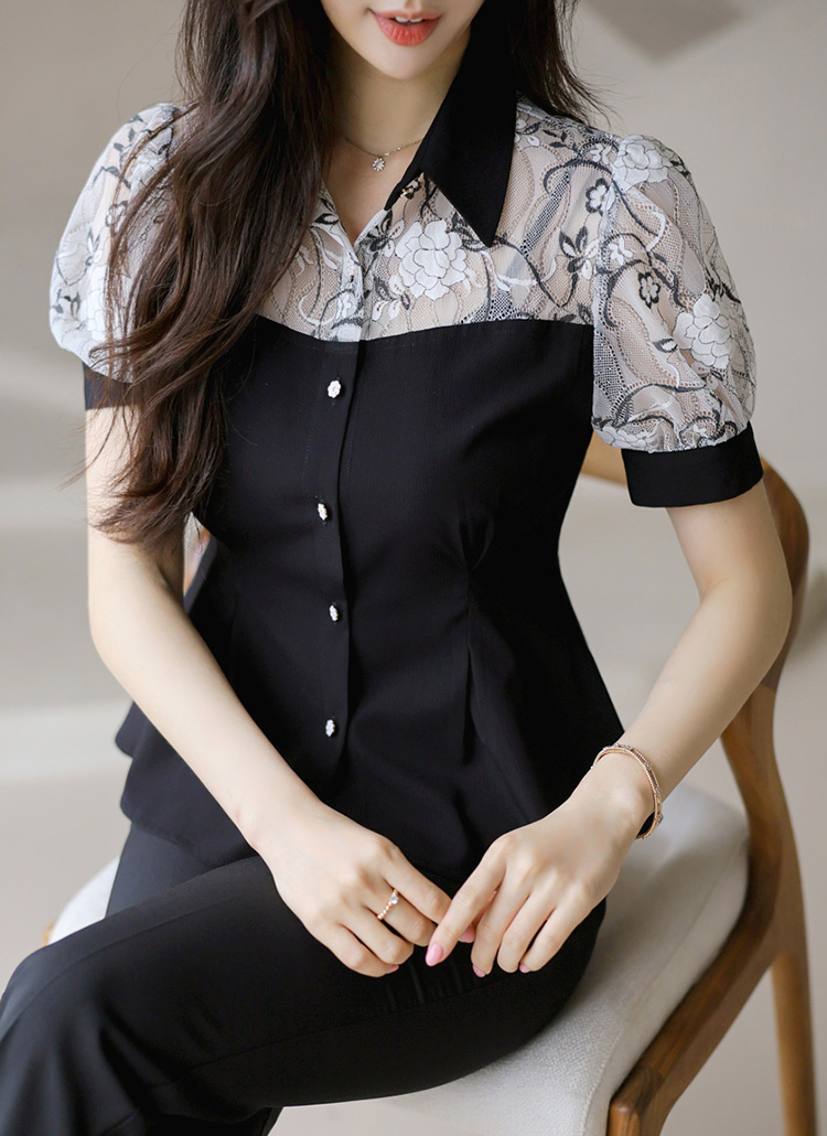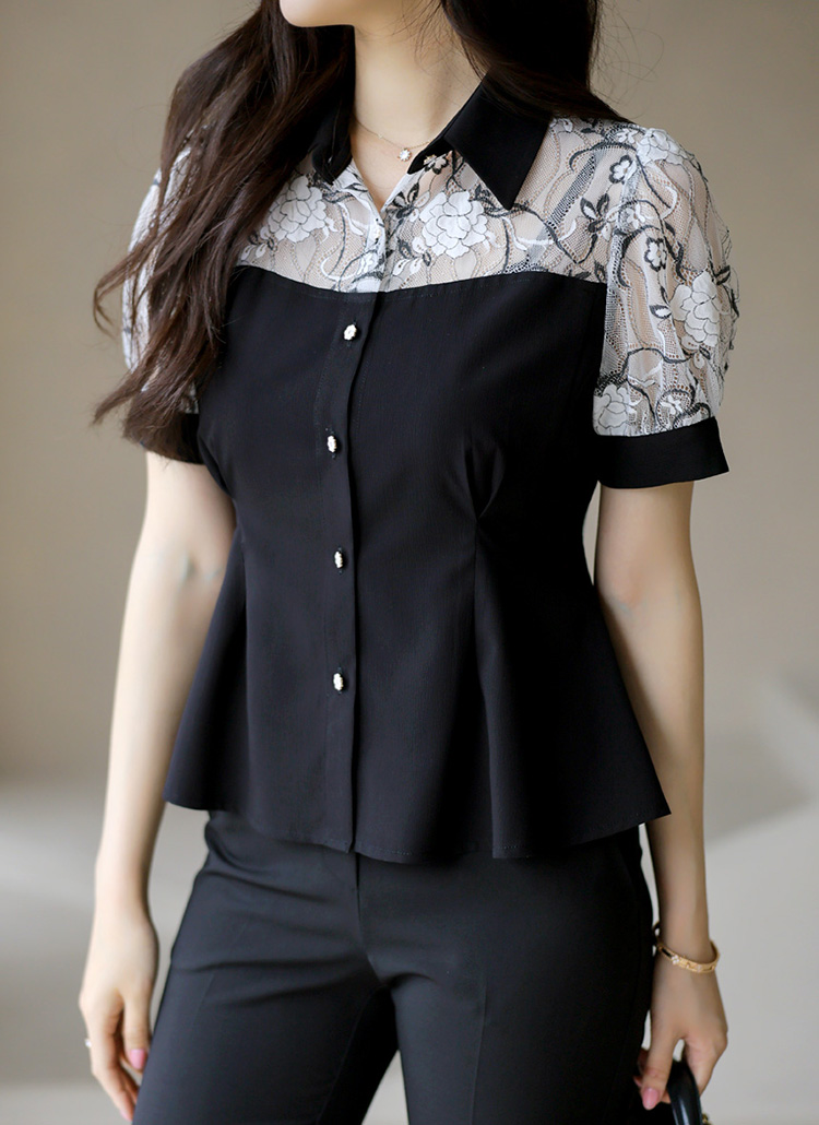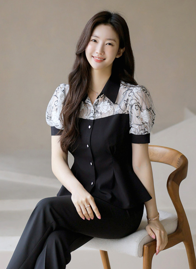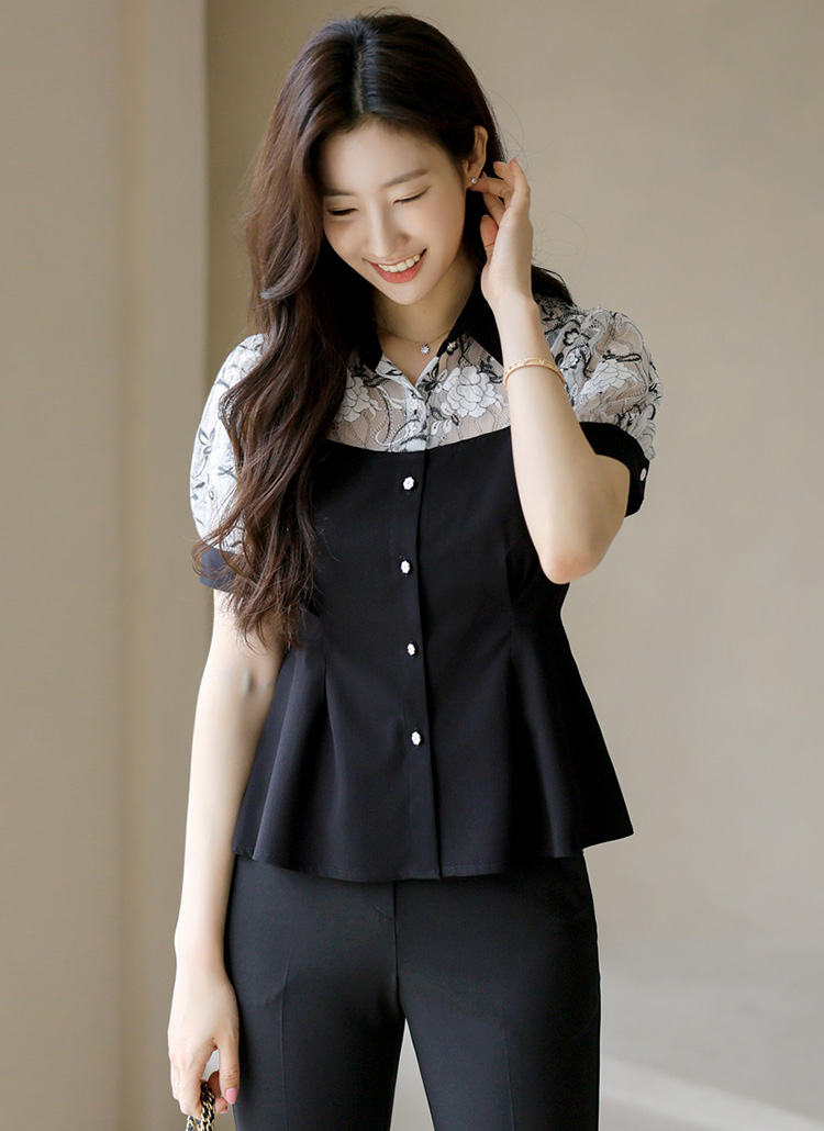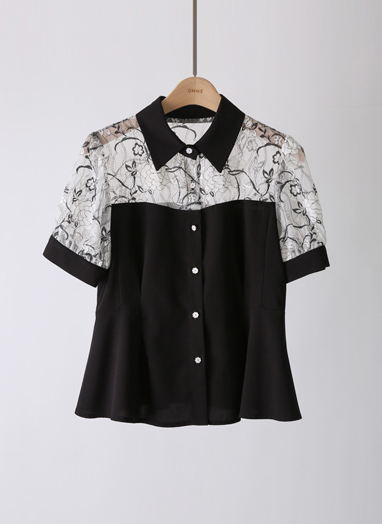 [LouisAngel] ツートンフラワーレースドッキングペプラムブラウス bl40545