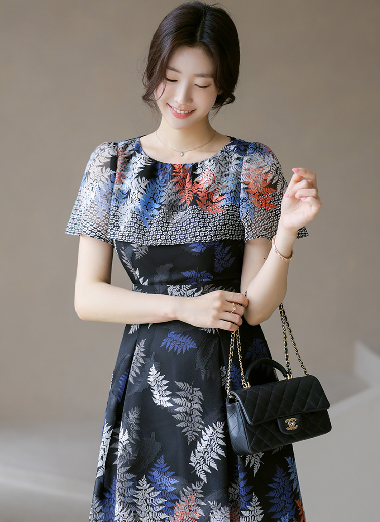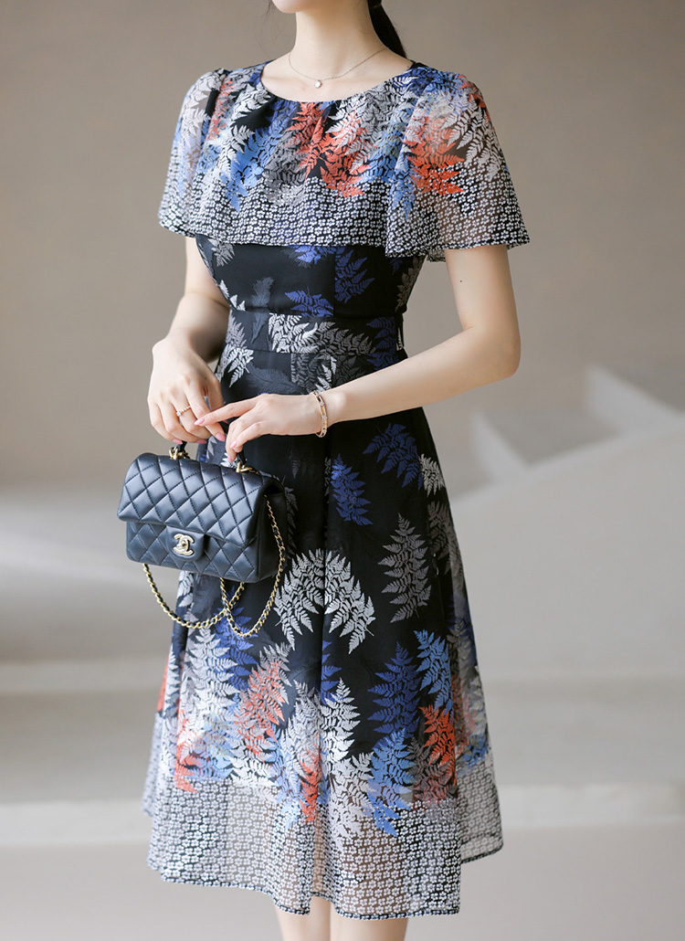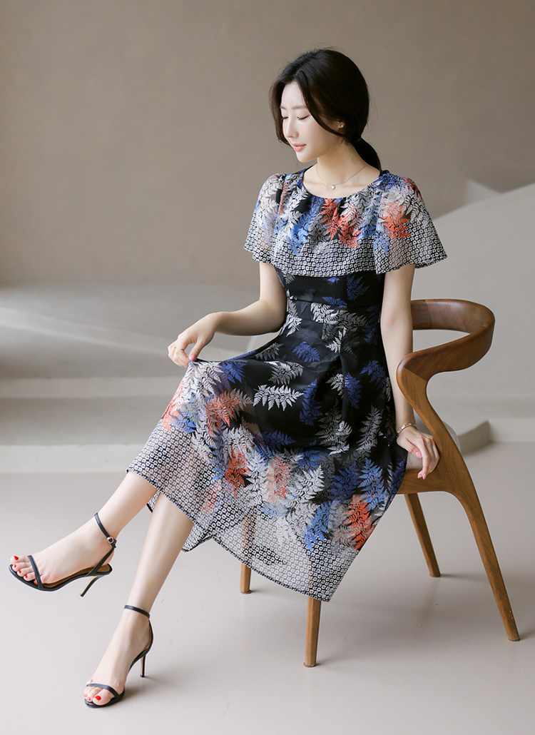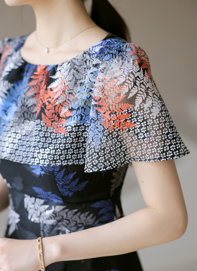 [LouisAngel] ボタニカルプリントケープシアーワンピース op40578