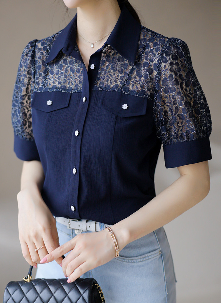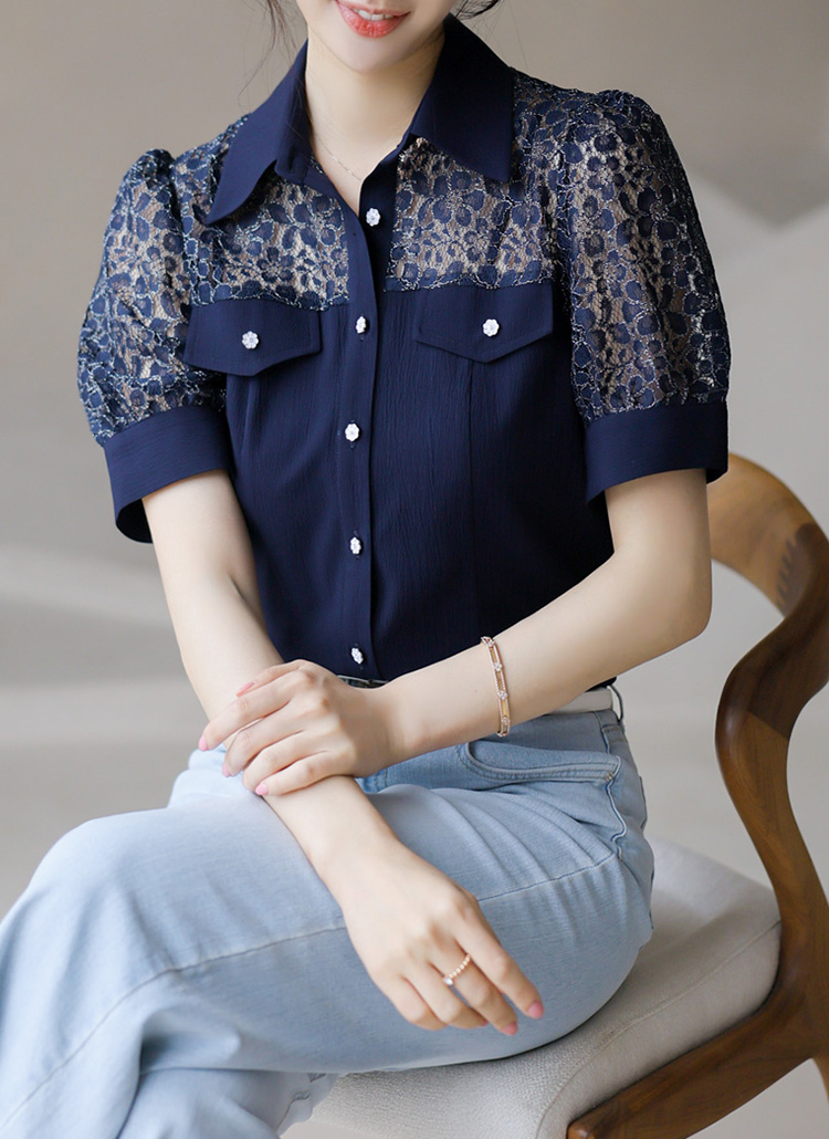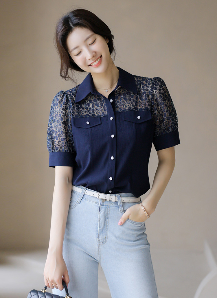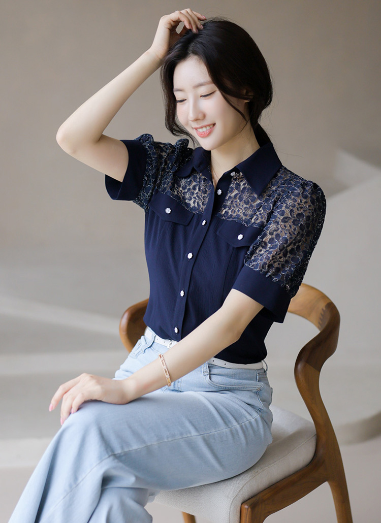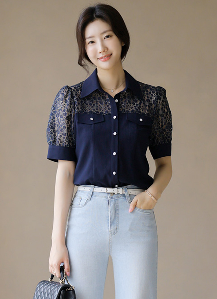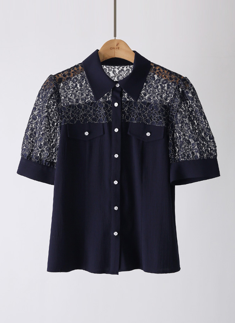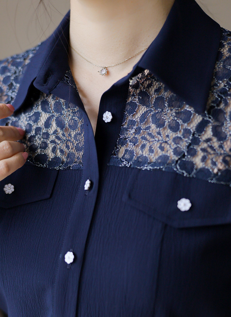 [LouisAngel] ラメフラワーレースドッキングブラウス bl40623