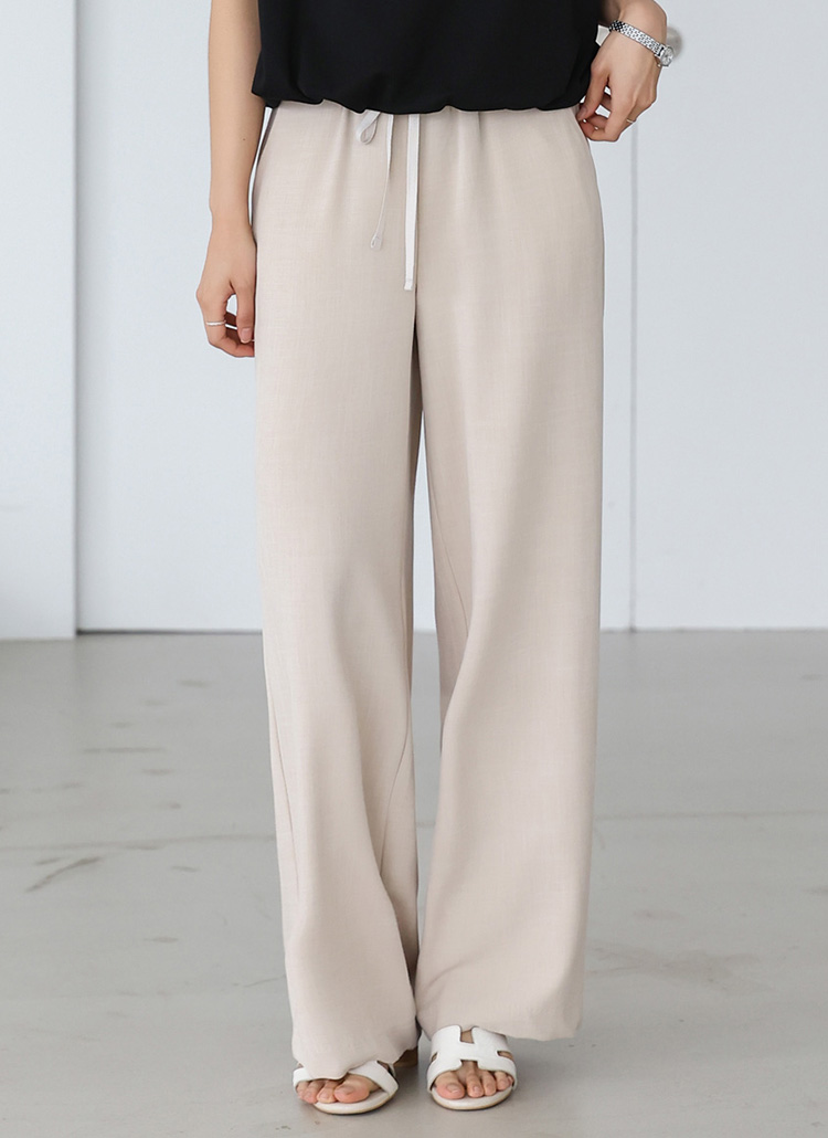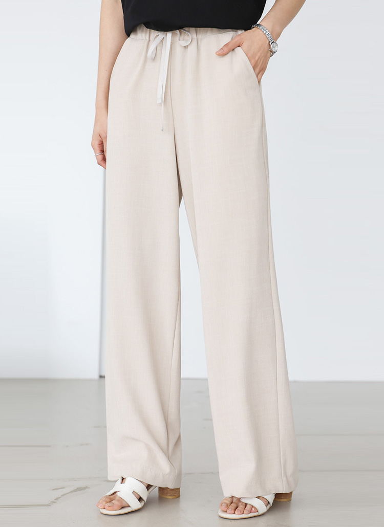 허리 밴딩으로 편안함을 더해주며 와이드한 핏이
