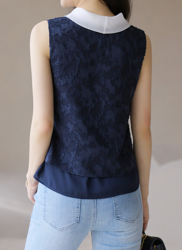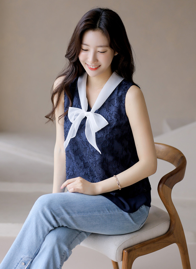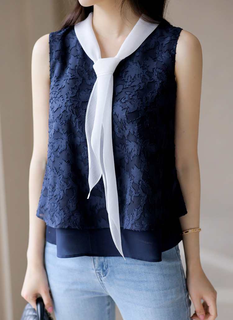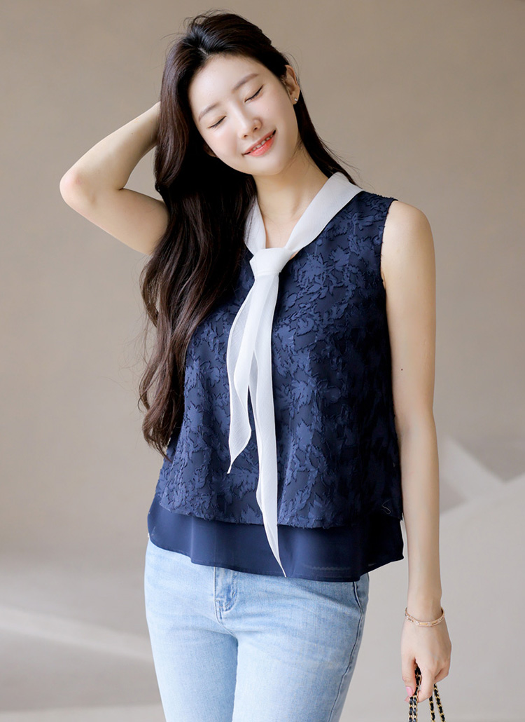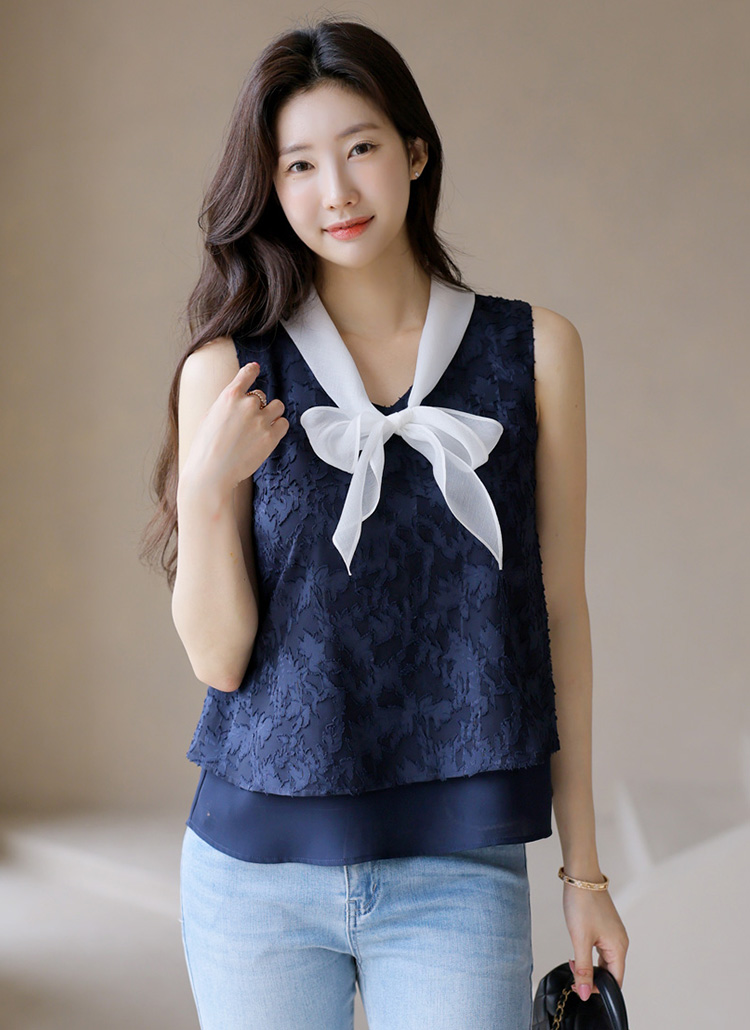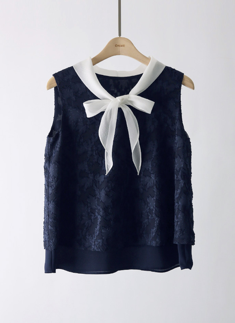 [LouisAngel] ホワイトリボンポイントノースリーブ ジャガードレースブラウス bl40662