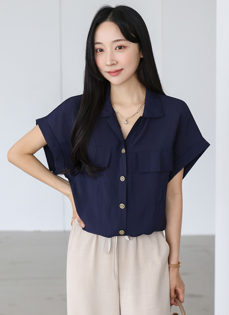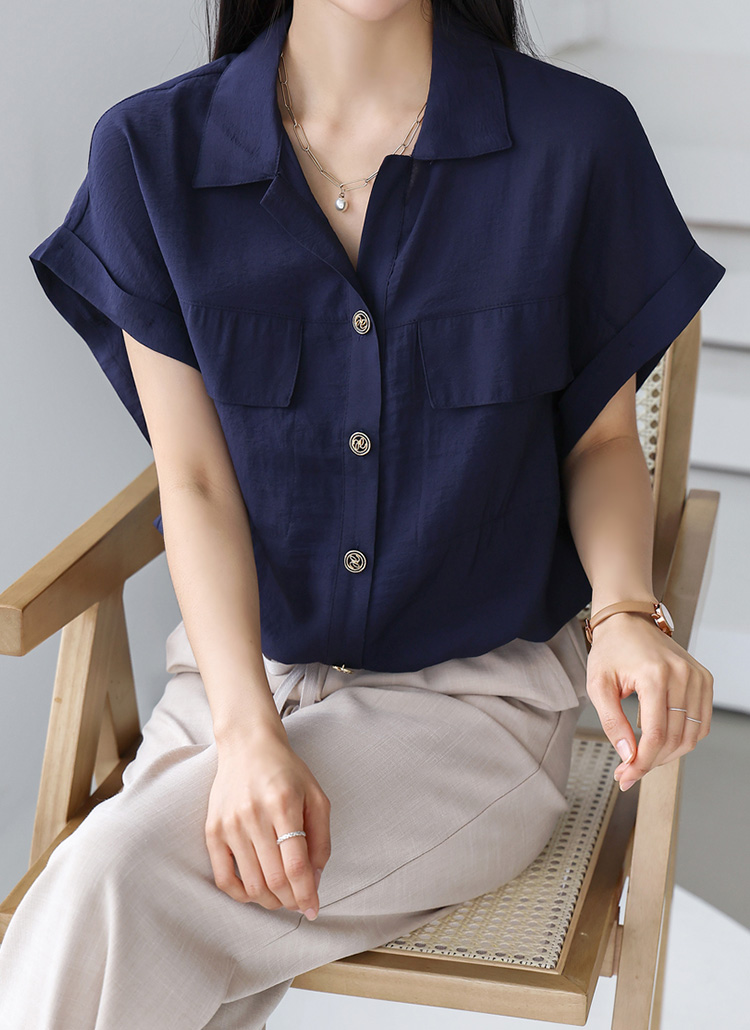 볼드버튼 롤업 캡소매 블라우스에요 :)